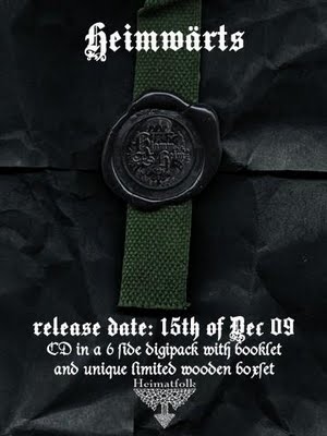 На известном неофолковом лейбле Heimatfolk (дочке Steinklang) выходит дебютный альбом неофолк-группы KlammHeim, который называется Heimwärts. Дата выхода — 15 декабря. Альбом выйдет в двух вариантах: 6-панельный дигипак и коробочная версия тиражем 150 штук. В коробочной версии будет бонус-CD (на нем экстратрек видео с живыми выступлениями группы), майка, открытки и особое поздравление из Штирии.