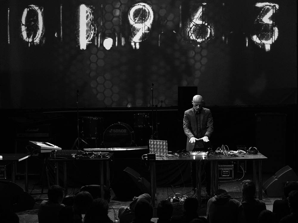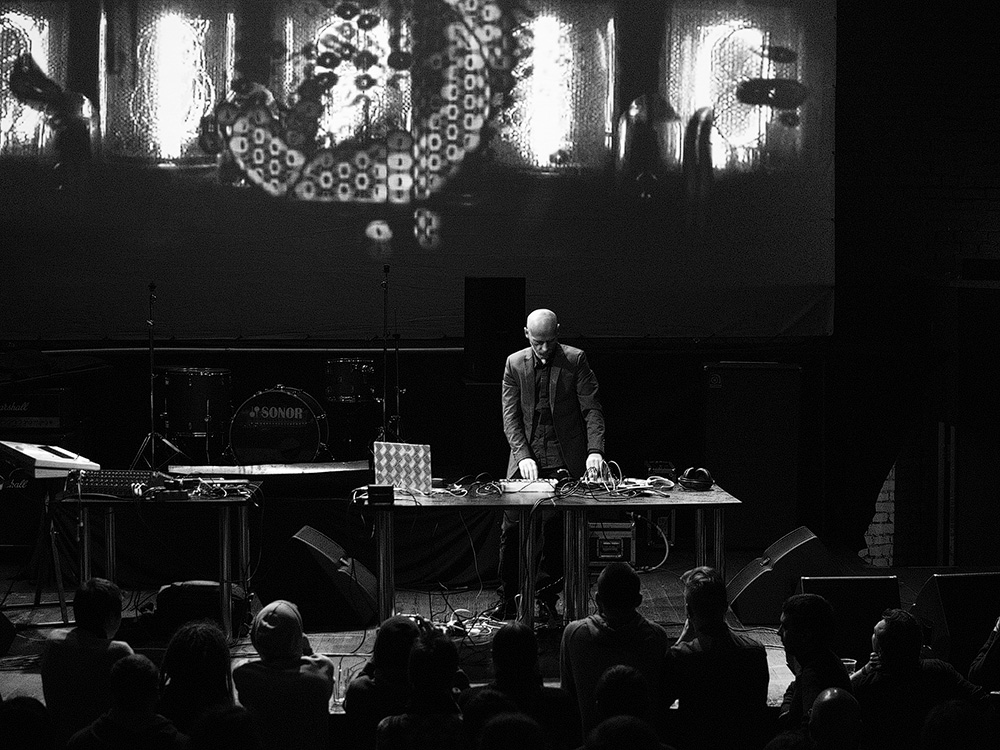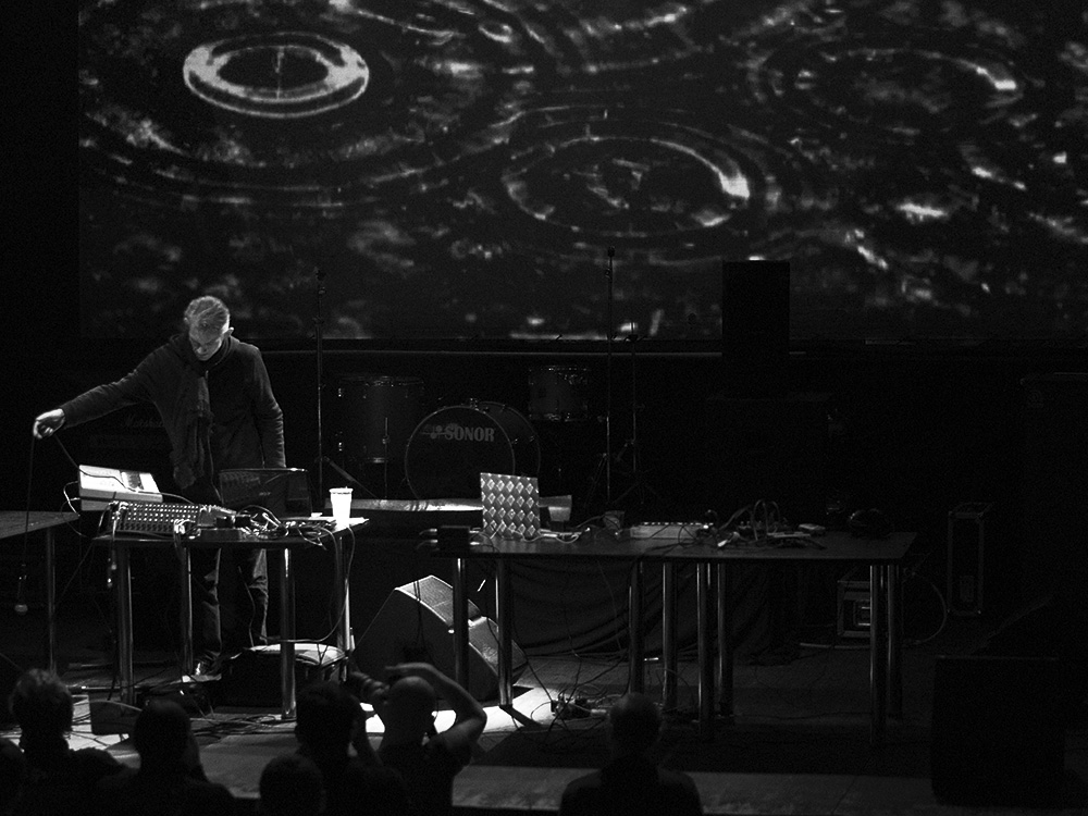 На мой взгляд концерт состоял из двух блоков: пример «мертвой музыки» — набора звуков и видео инсталяций. Все время когда играли Mr. Gaus