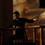 Первой на сцену вышла LAMIA VOX. Моё знакомство с музыкой этого проекта произошло на фестивале «Harfang» — тогда она привела меня в полный восторг, напрочь разрушив в моей голове стереотип, что dark ambient на концерте — это обычно дядька с ноутбуком в сопровождении видеоряда.  Вместе с LAMIA VOX на сцене появилась также новая деталь — кубок с дымящимся ладаном, и я поняла, что в этот раз оккультизма в её выступлении будет ещё больше. Так оно и оказалось: как только из колонок раздались первые звуки за временем я следить перестала и полностью погрузилась в мрачную атмосферу, наполненную зловещим шёпотом, запахом ладана, магическими символами и картинами словно предвещающими грядущий апокалипсис. Отыграв около часа Lamia уступила место на сцене Питеру Андерсену (RAISON D`ETRE). Признаться последний альбом RAISON D`ETRE прошёл как-то мимо меня, но некоторые печалятся, что в рамках этого проекта мистер Андерсон уже не тот. Судя по тому, что услышала я, могу сказать, что он просто идёт дальше, и выглядит и слушается всё это не хуже и не лучше, просто по другому. Музыка, в отличие от LAMIA VOX, стала более личной, более отрешённой, а видеоряд  предлагал нам попутешествовать по индустриальным развалинам, костнице, побродить среди каменных крестов…  Сам мистер Андерсон выглядел очень мрачным и сосредоточенным, казалось, что ему совсем нет дела до зрителей, и он в пребывает в каком-то своём мире, где прихлёбывая из бутылки алкоголь, экспериментирует со звуковыми полотнами используя для  разбавления звука казалось не сочетаемые между собой предметы, например лист железа, который Питер терзал при помощи смычка и кисточки с металлическим ворсом. Выступление RAISON D`ETRE так же продлилось примерно час, после чего несмотря на непрекращающиеся аплодисменты, мистер Андерсон сказал, что это была последняя композиция и быстро удалился со сцены. Итог же подведу словами моего друга, который впервые попал на подобное мероприятие, «круто, но под конец стало немного скучно».