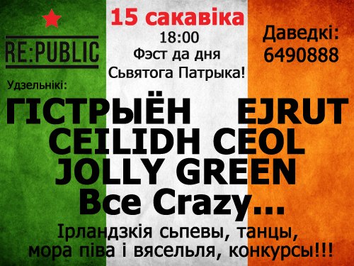 Вас чакаюць: Ірландскія сьпевы, Танцы, Конкурсы, Мора Піва і Вяселля!!!