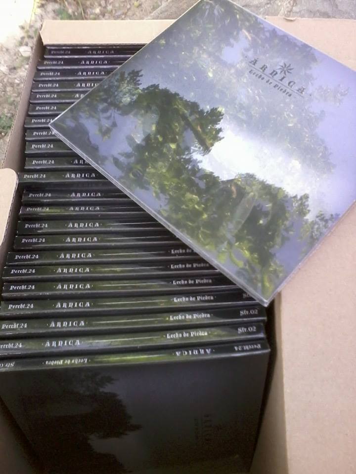 Итак, новый альбом ÀRNICA Lecho de Piedra вышел. Шестипанельный дигипак. Премиальное издание тиражом 50 штук включает в себя еще двухсторонний плакат, нашивку и обложку из козьей шкуры. Заказать диск — здесь.