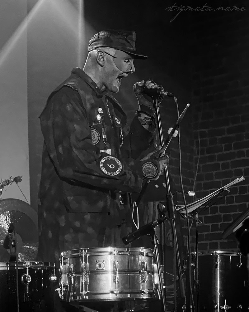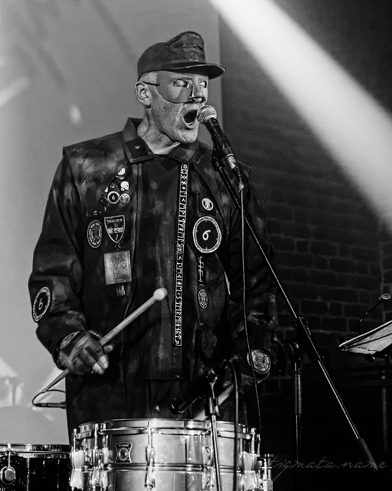 Следующим пунктом нашей программы был проект Патрика Легаса — 6 COMM. Патрик, как известно, стоял у истоков DEATH IN JUNE. Говорят, что именно он придумал имидж группы — все эти эссесовские униформы, мертвые головы и пр. Но, как заведено, в какой-то момент Даглас с ним разругался, соответственно, DEATH IN JUNE пошли по жизни в одну сторону, ну а Патрик — в другую. Уход Легаса из DEATH IN JUNE считается завершением «первого» этапа DI6. Я не в курсе деталей всех этих дел давно минувших дней, знаю только, что Даглас позволяет себе нелицеприятные замечания в сторону творчества Легаса, обвиняя последнего в плагиате. Оба проекта на сцене действительно очень похожи друг на друга, но кто у кого и что украл — не мне решать. Патрик выступал с помощницей — барабанщицей Gaya Donadio, известной по своему участию в ANTIchildLEAGUE. Как все прошло? Если вы видели «живьем» DEATH IN JUNE, то вас не удивит и 6 COMM, здесь, правда, нет акустики и гитар, зато много барабанов, ну, то есть того, чем обычно начинаются выступления Пирса.