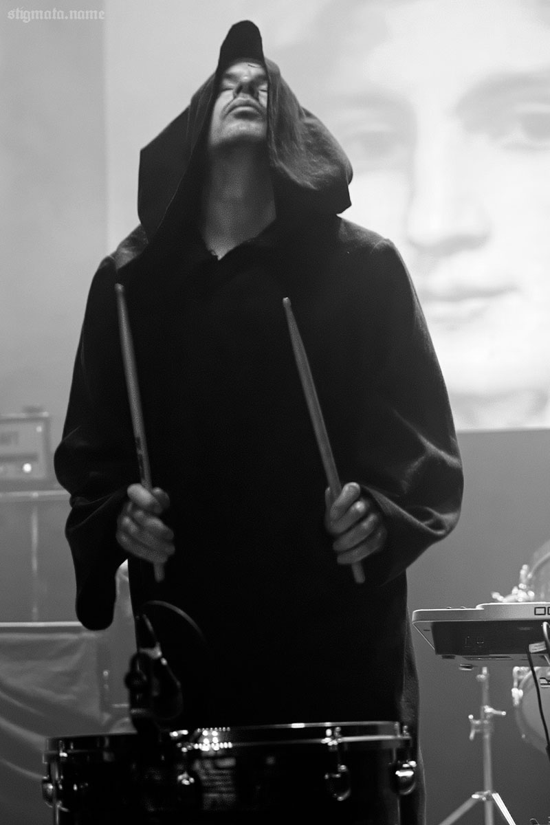 За усыпательным SVARTSINN на сцене появились THE DEVIL AND THE UNIVERSE, ради которых я собственно и отправился в Польшу. Вернее, они были половиной причины. Вторая половина — DERNIÈRE VOLONTÉ. Троица мракобесов вышла к слушателям в своих фирменных козлиных масках, которые были сброшены после завершения увертюры. И началось веселье! Безумный сатанинский шабаш с элементами комедийного представления. Богохульники выкладывались по полной, аки демоны барабанили по своим многочисленным барабанам, Ashley Dayour еще успевал осенять публику перевернутым крестом из барабанных палочек и играть на гитаре. Черная месса на Пасху удалась.