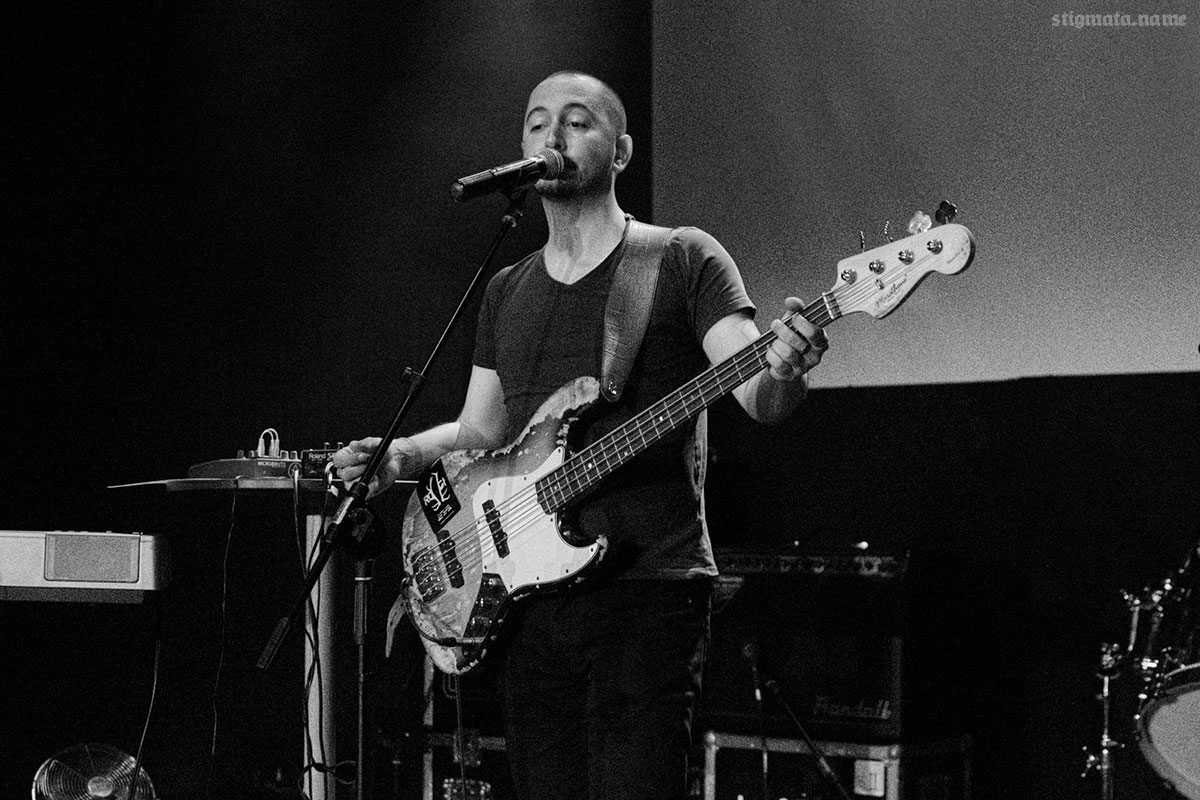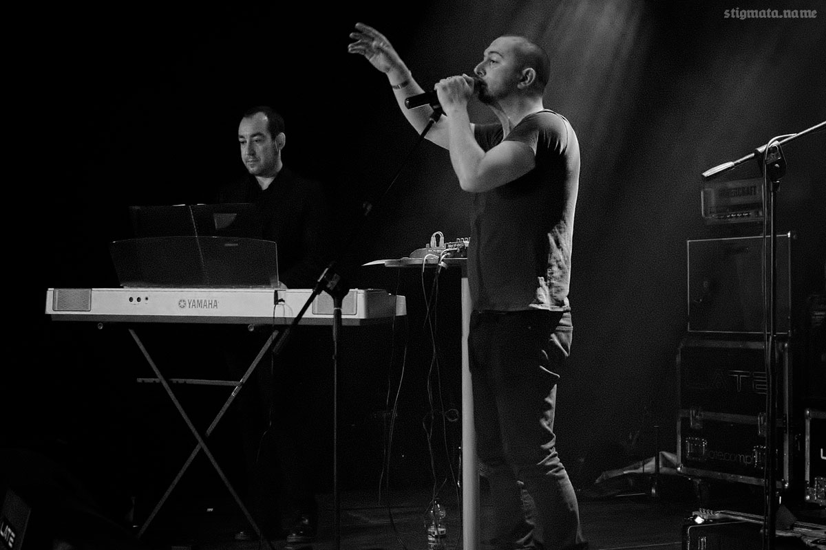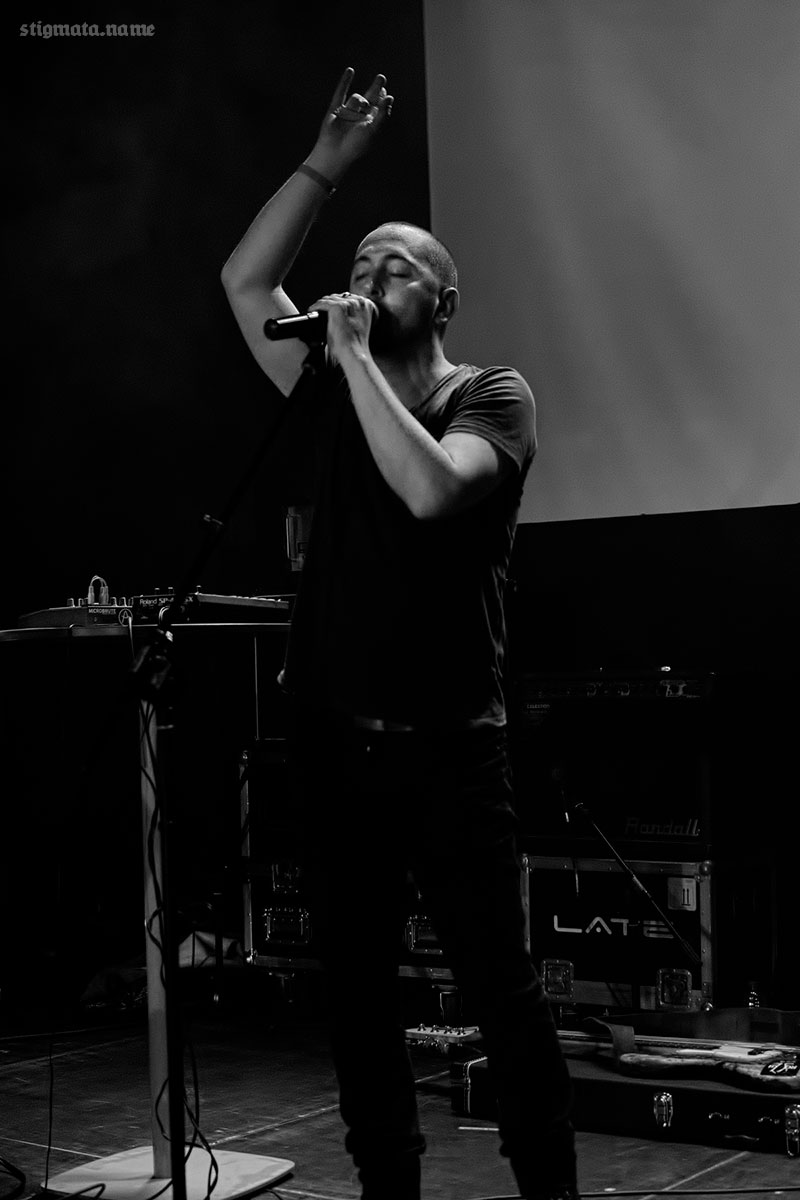 Теперь про сам фестиваль. Проходил он в заведении под названием «Новая Газовня», какой-то модной культурной площадке, специально заточенной под живые выступления. Первую местную группу URINATORIUM мы почти не застали, но такова уж судьба всех первых местных неизвестных команд — их предпочитают паре бокальчиков горького крафта. Вторыми выступали два бородатых хипстерочка из проекта [HAVEN]. Их мы посмотрели. Музыка меня не особо впечатлила — обычная не самая плохая танцевальная электроника, а вот визуальная подача была на высоте — ребятки натянули перед сценой второй прозрачный экран, на который транслировали видеоряд. За сценой находился еще один обычный белый экран, так что видеоряд обрел объем и получилось оригинальное бюджетное 3D.