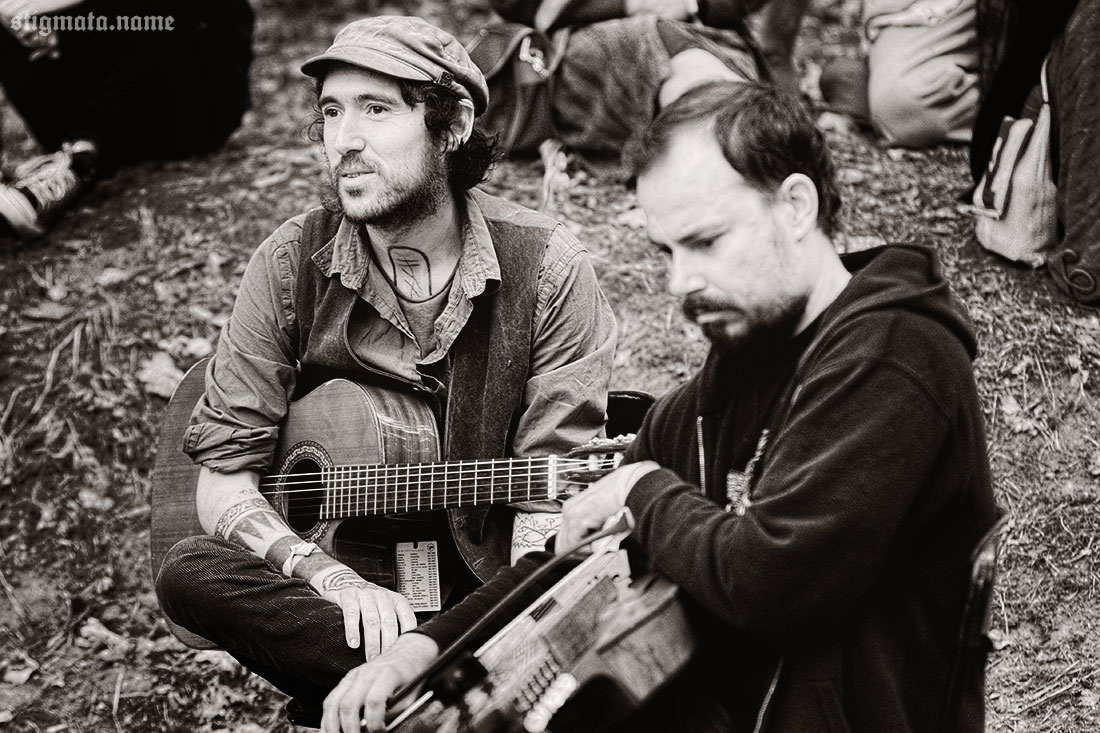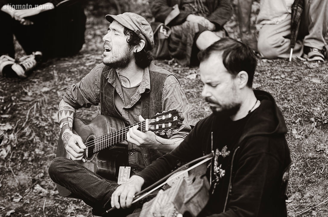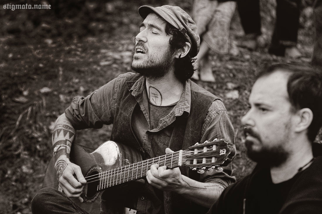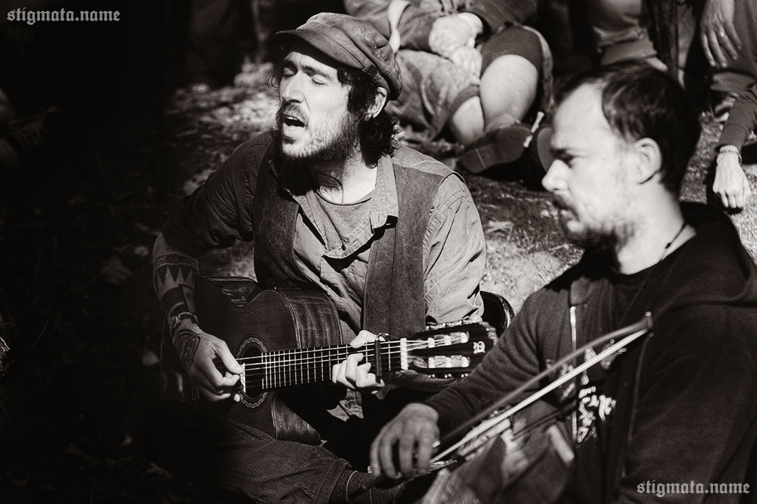 Днем под дубом, тем самым, у которого сутки назад проводился ритуал открытия фестиваля, давали второй unplugged концерт испанцы SANGRE DE MUERDAGO. Дорогая редакция, понятное дело, не могла пропустить столь интимное акустическое мероприятие. Выступление оказалось намного интереснее и душевнее предыдущего, вечернего. Как ни крути, а SANGRE DE MUERDAGO — группа не для стадионов.