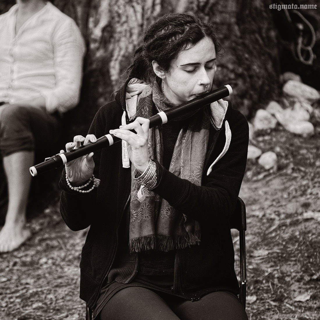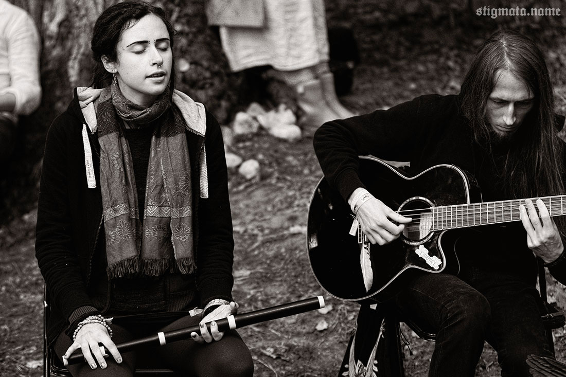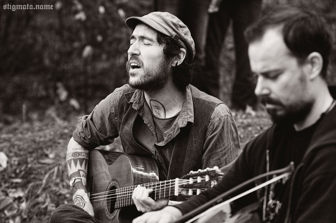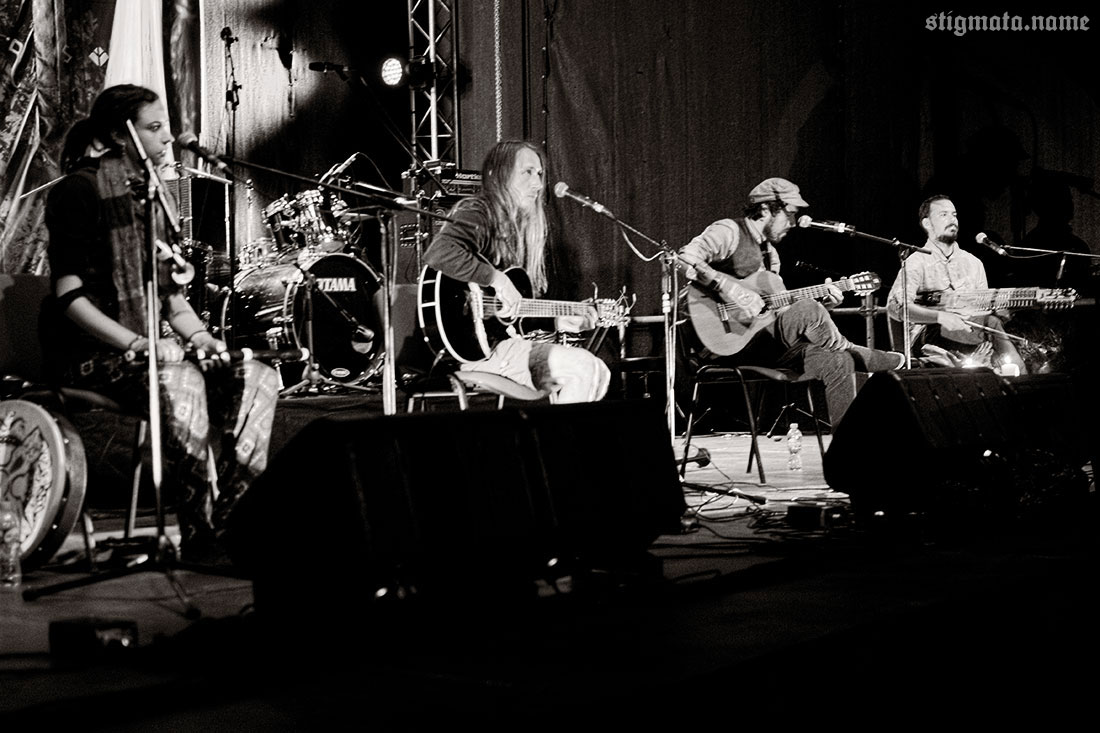 Днем под дубом, тем самым, у которого сутки назад проводился ритуал открытия фестиваля, давали второй unplugged концерт испанцы SANGRE DE MUERDAGO. Дорогая редакция, понятное дело, не могла пропустить столь интимное акустическое мероприятие. Выступление оказалось намного интереснее и душевнее предыдущего, вечернего. Как ни крути, а SANGRE DE MUERDAGO — группа не для стадионов.