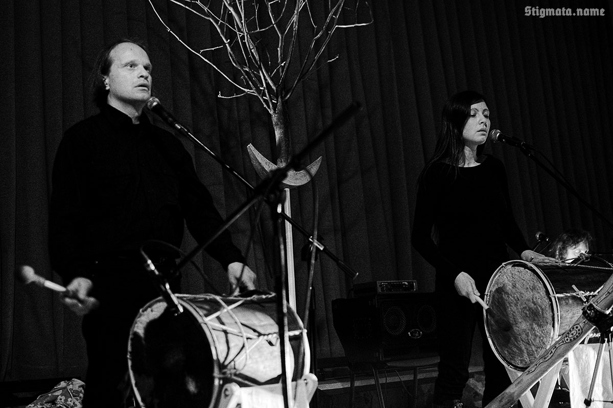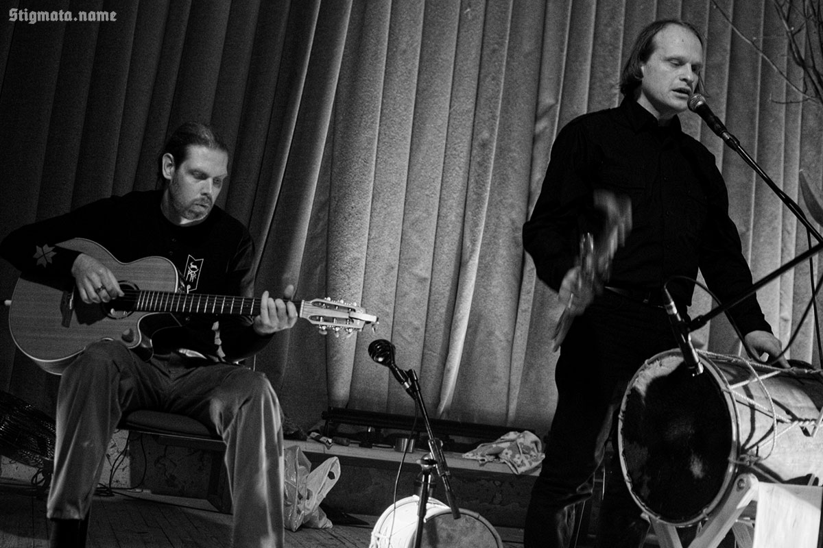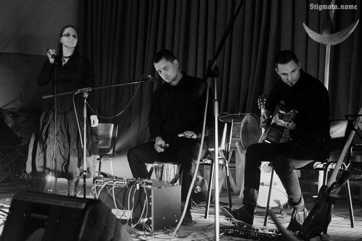 ROMOWE RIKOITO я не видел «живьем» лет сто, ну а если точнее, то в последний раз наши пути пересекались тоже в Литве — на фестивале Menuo Juodaragis. Другой состав, другая музыка, совсем другая атмосфера. RR уже не играют dark folk, новое обличье команды скорее ритуальное, более динамичное, но по-прежнему гипнотизирующее. Голос древней Пруссии. Говорят, декабрьское выступление команды знаменует новое начало в карьере проекта — посмотрим, хотелось бы, чтобы RR действительно вернулись к активной музыкальной деятельности, ибо, как ни крути, а это одна из лучших неофолковых команд нашей части Европы. Если вы решите крутануть прилагаемый к статье ролик, снятый на фестивале, то увидите, что состав группы на одну из песен был «усилен» Угнисом, главным человеком лейбла Dangus и организатором фестивалей Menuo Juodaragis и Prutena.