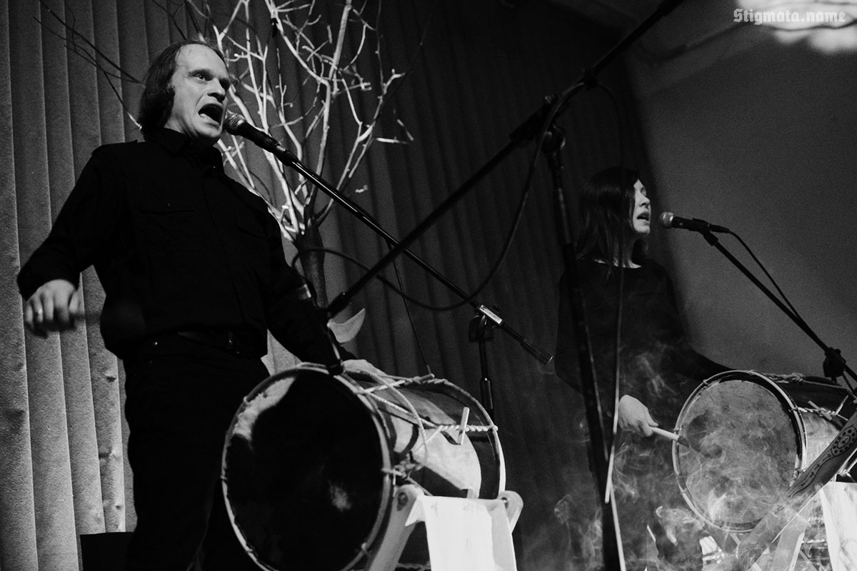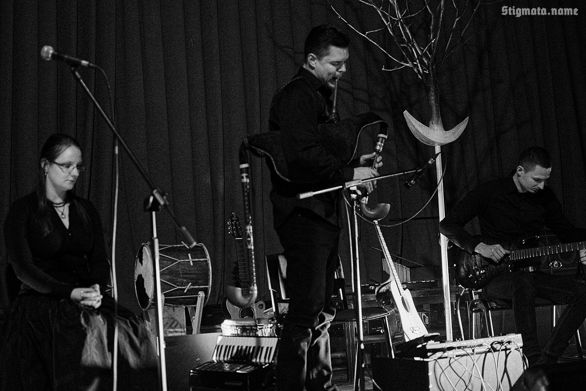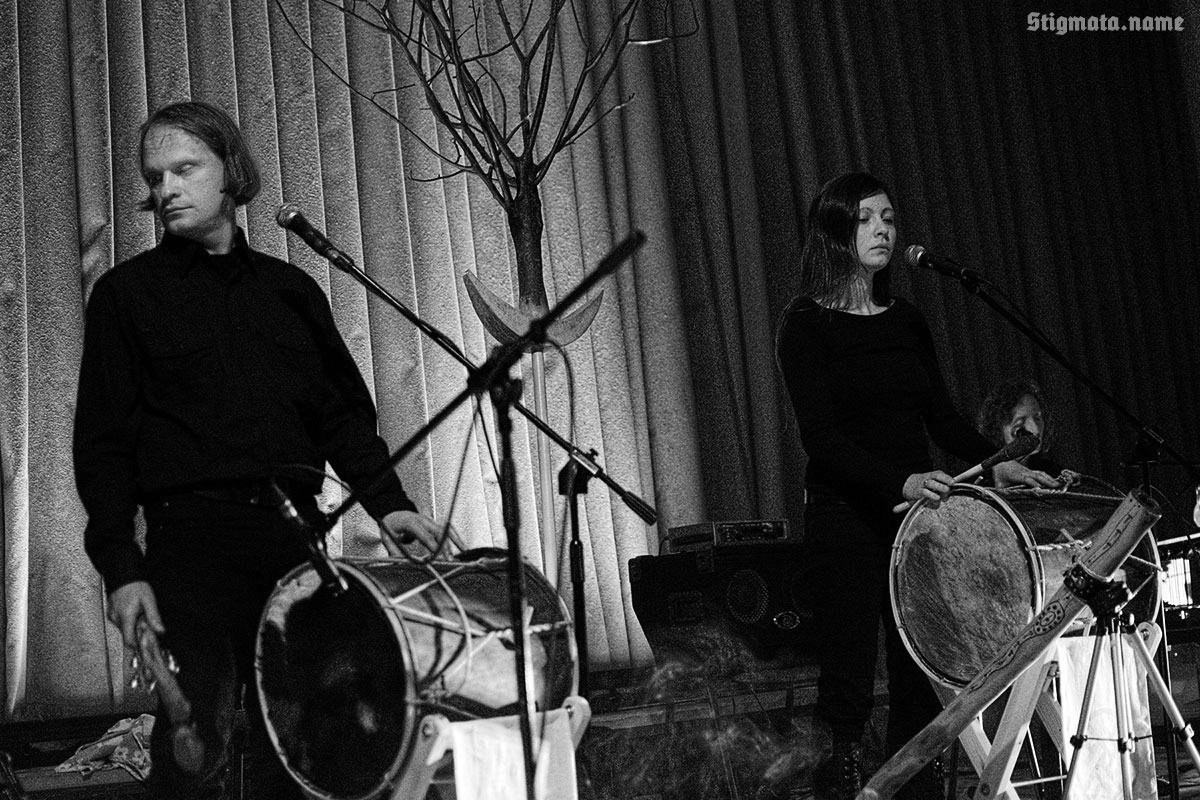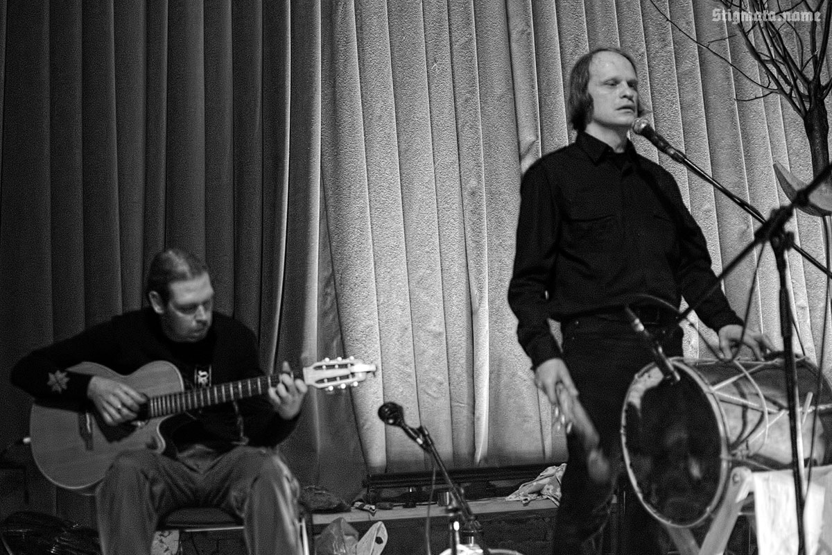 ROMOWE RIKOITO я не видел «живьем» лет сто, ну а если точнее, то в последний раз наши пути пересекались тоже в Литве — на фестивале Menuo Juodaragis. Другой состав, другая музыка, совсем другая атмосфера. RR уже не играют dark folk, новое обличье команды скорее ритуальное, более динамичное, но по-прежнему гипнотизирующее. Голос древней Пруссии. Говорят, декабрьское выступление команды знаменует новое начало в карьере проекта — посмотрим, хотелось бы, чтобы RR действительно вернулись к активной музыкальной деятельности, ибо, как ни крути, а это одна из лучших неофолковых команд нашей части Европы. Если вы решите крутануть прилагаемый к статье ролик, снятый на фестивале, то увидите, что состав группы на одну из песен был «усилен» Угнисом, главным человеком лейбла Dangus и организатором фестивалей Menuo Juodaragis и Prutena.