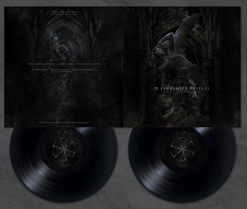Во-первых, это виниловое переиздание знаменитой записи шведского культа IN SLAUGHTER NATIVES Mort Aux Vaches. Истинные ценители темной музыки наверняка в курсе этой легендарной серии передач голландской радиостанции VPRO, записи которой затем выходили на лейбле Staalplaat. Альбом 1994 года впервые отливается в виниле. Тираж 250 штук. Фетишисты могут также побаловать себя деревянной коллекционной коробкой, включающей в себя еще и майку, постер А2 формата и кассетное переиздание этого же альбома, в которое входит и бонус-материал (!) периода 94-95 гг.