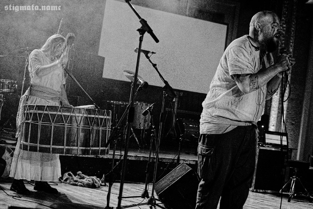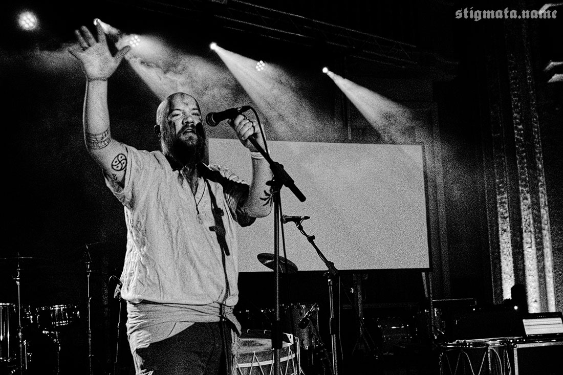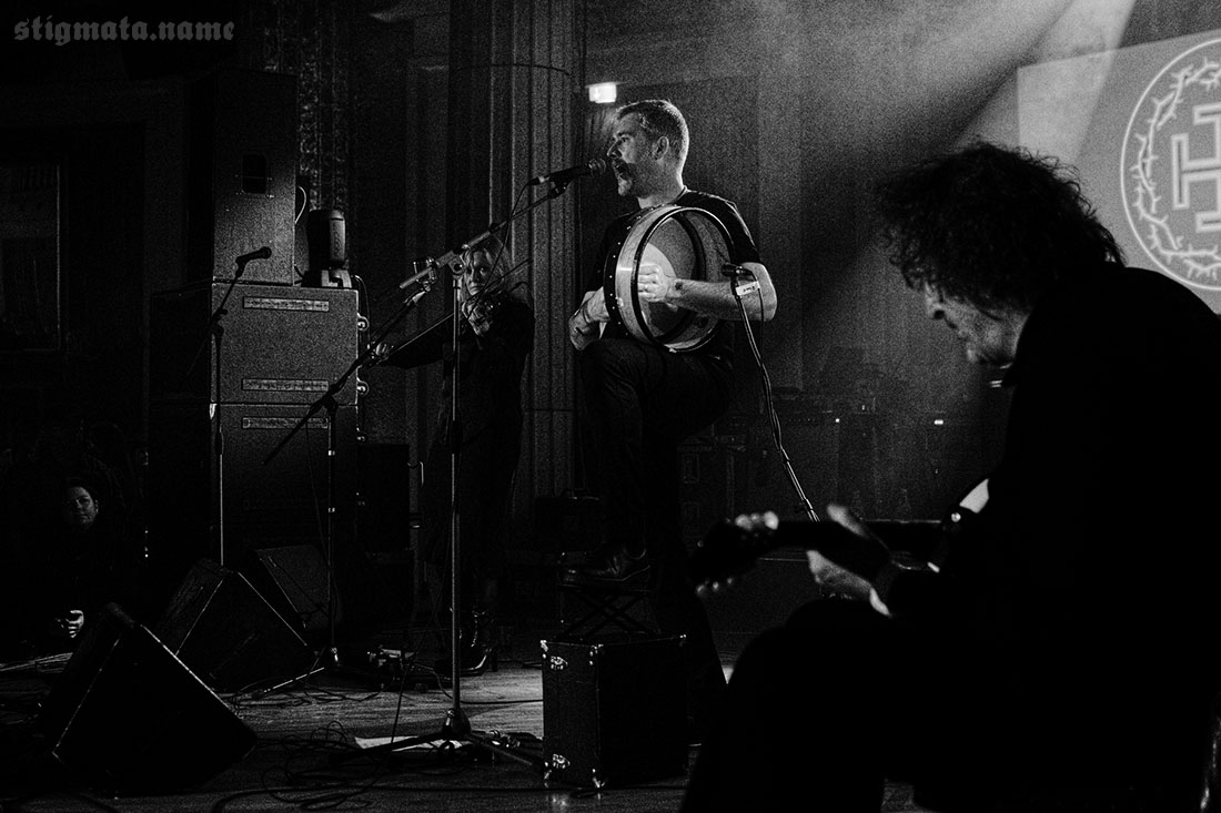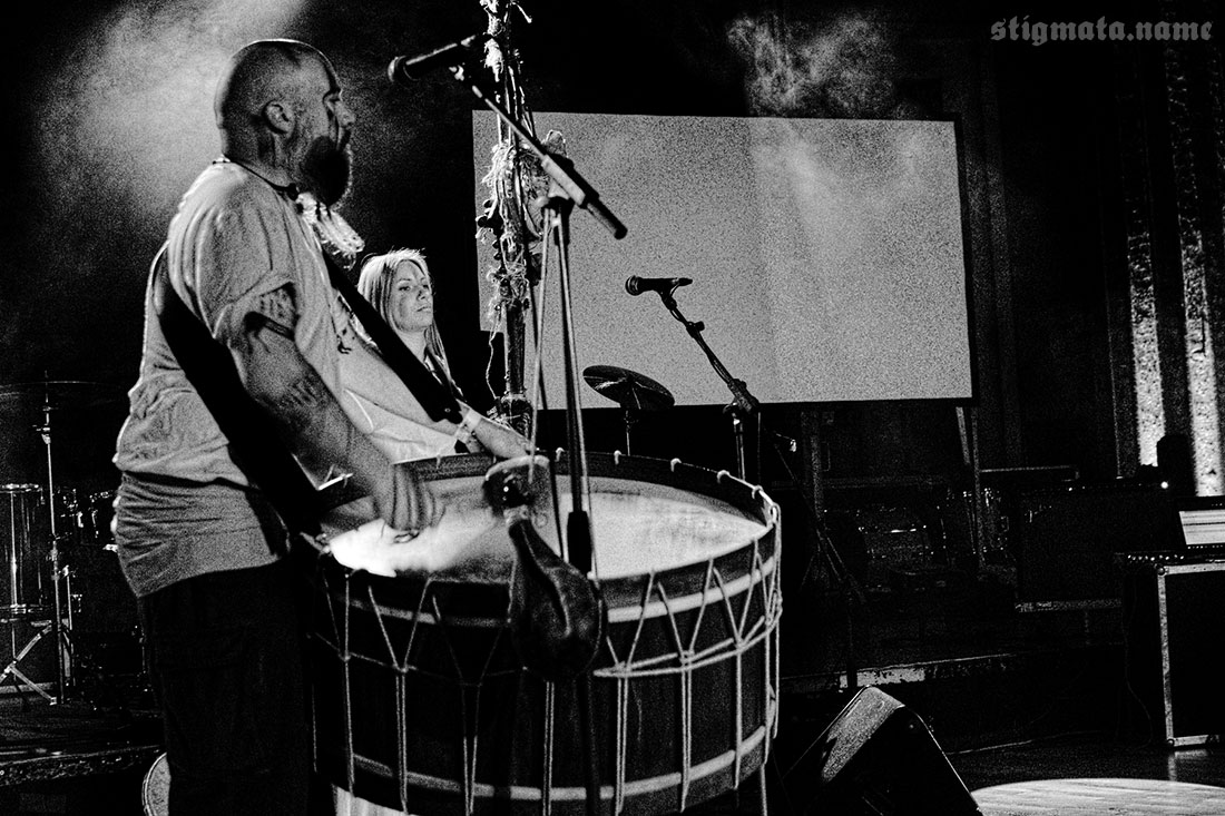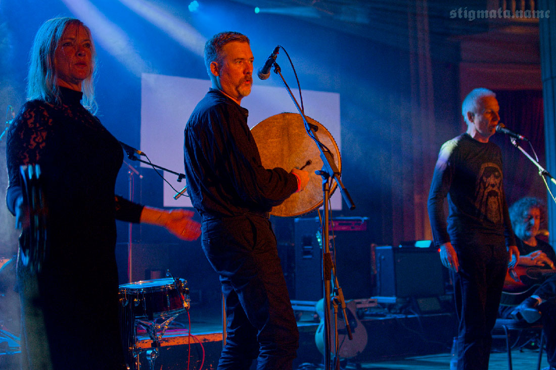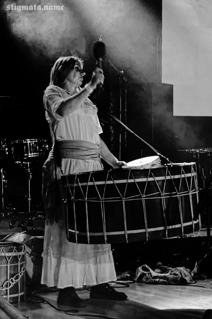За венграми на сцену вышли испанцы (хотя они себя называют иберийцами) ARNICA, и, без всякого преувеличения, их выступление было одним из самых интересных не только в этот вечер, но и вообще за весь фестиваль. Ритуальный боевой фолк с криками, гремящими барабанами и, конечно, великолепными костюмами. Для меня это уже третье выступление ARNICA (впервые испанцев я увидел на MJR, затем был первый Runes and Men в Дрездене) и, без сомнения, прогресс группы не заметить невозможно. В Лейпциге ARNICA выступали втроем — причем в большущий барабан била жена одного из музыкантов — Дэниэла, настоящая такая суровая shieldmaiden. Да, одну из песен испанцам помогал исполнять Майкл Мойнихан.