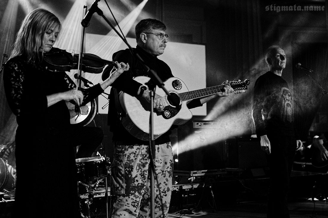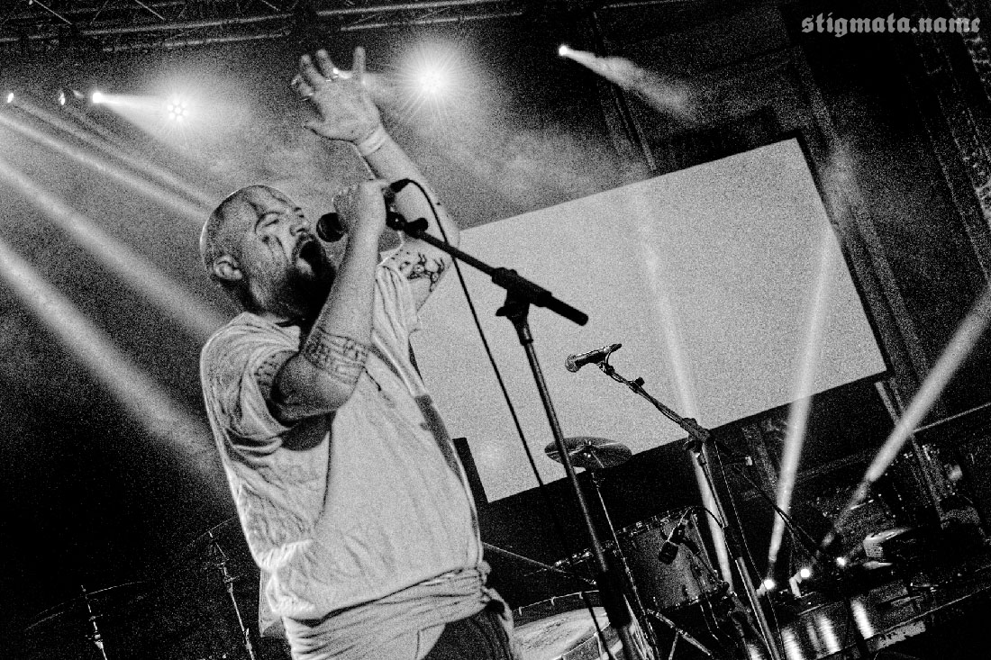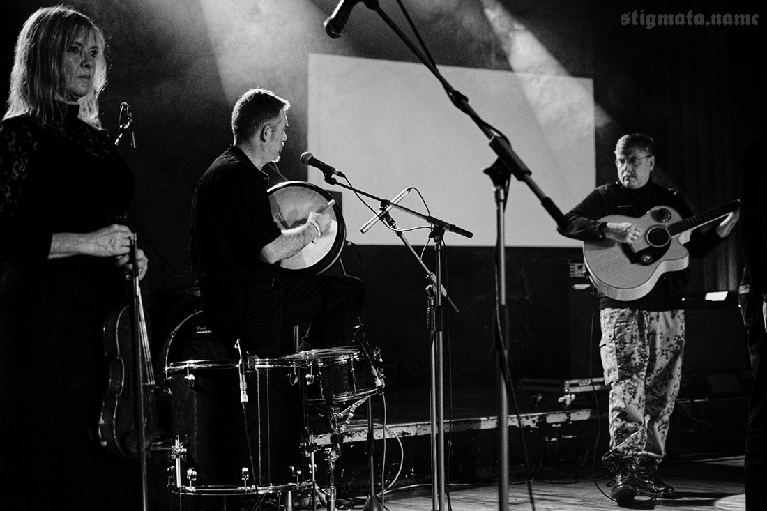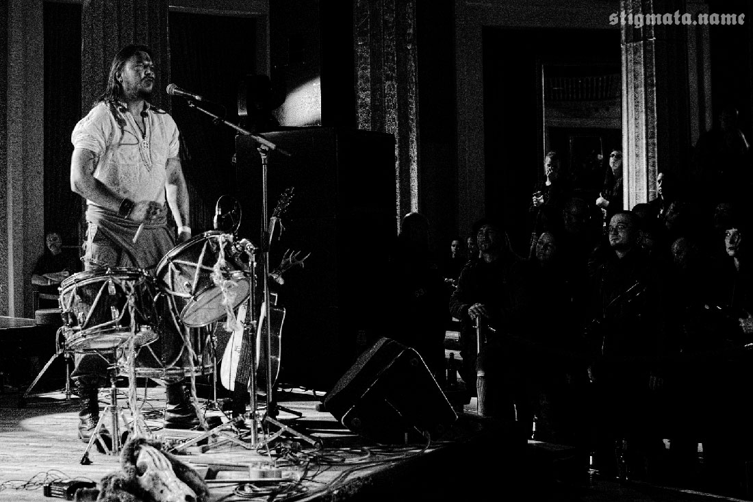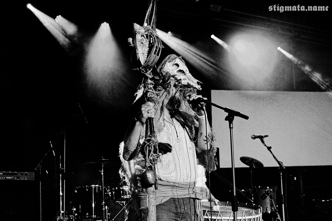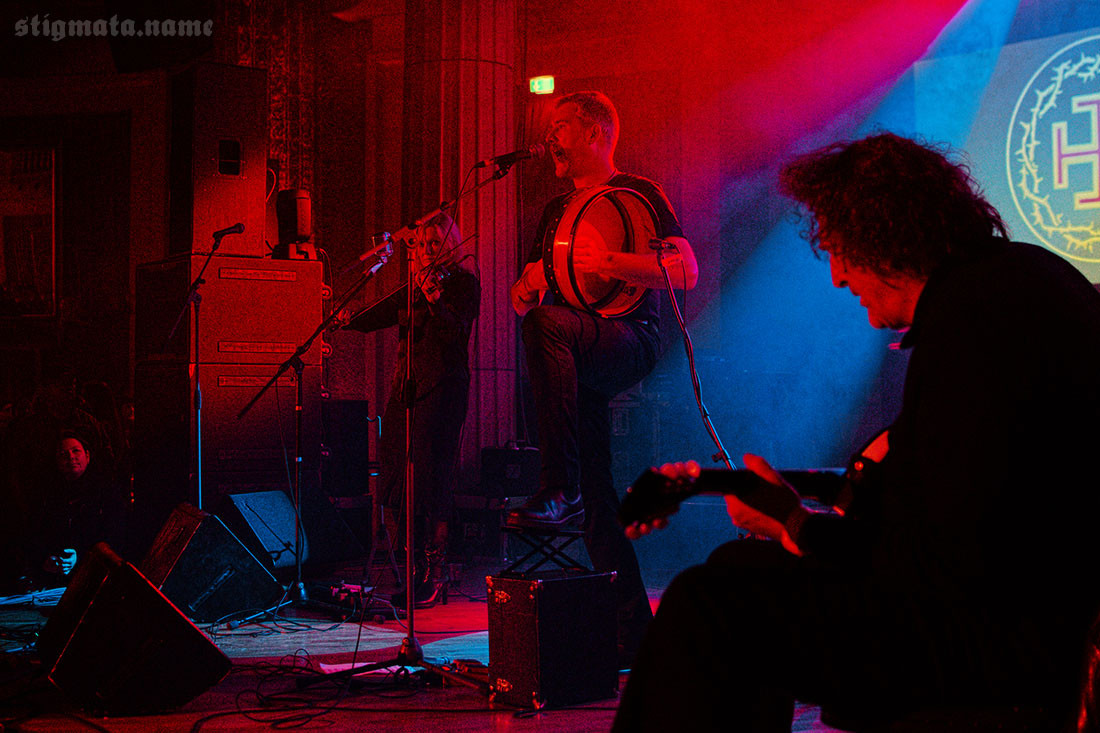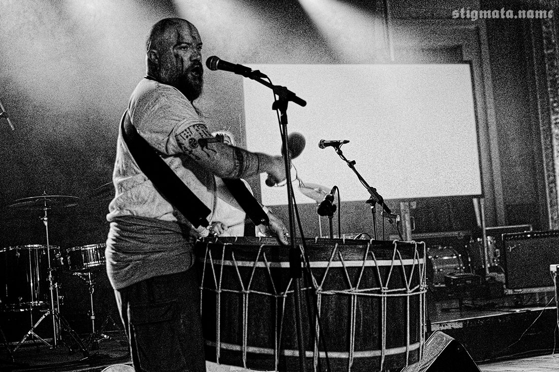 За венграми на сцену вышли испанцы (хотя они себя называют иберийцами) ARNICA, и, без всякого преувеличения, их выступление было одним из самых интересных не только в этот вечер, но и вообще за весь фестиваль. Ритуальный боевой фолк с криками, гремящими барабанами и, конечно, великолепными костюмами. Для меня это уже третье выступление ARNICA (впервые испанцев я увидел на MJR, затем был первый Runes and Men в Дрездене) и, без сомнения, прогресс группы не заметить невозможно. В Лейпциге ARNICA выступали втроем — причем в большущий барабан била жена одного из музыкантов — Дэниэла, настоящая такая суровая shieldmaiden. Да, одну из песен испанцам помогал исполнять Майкл Мойнихан.