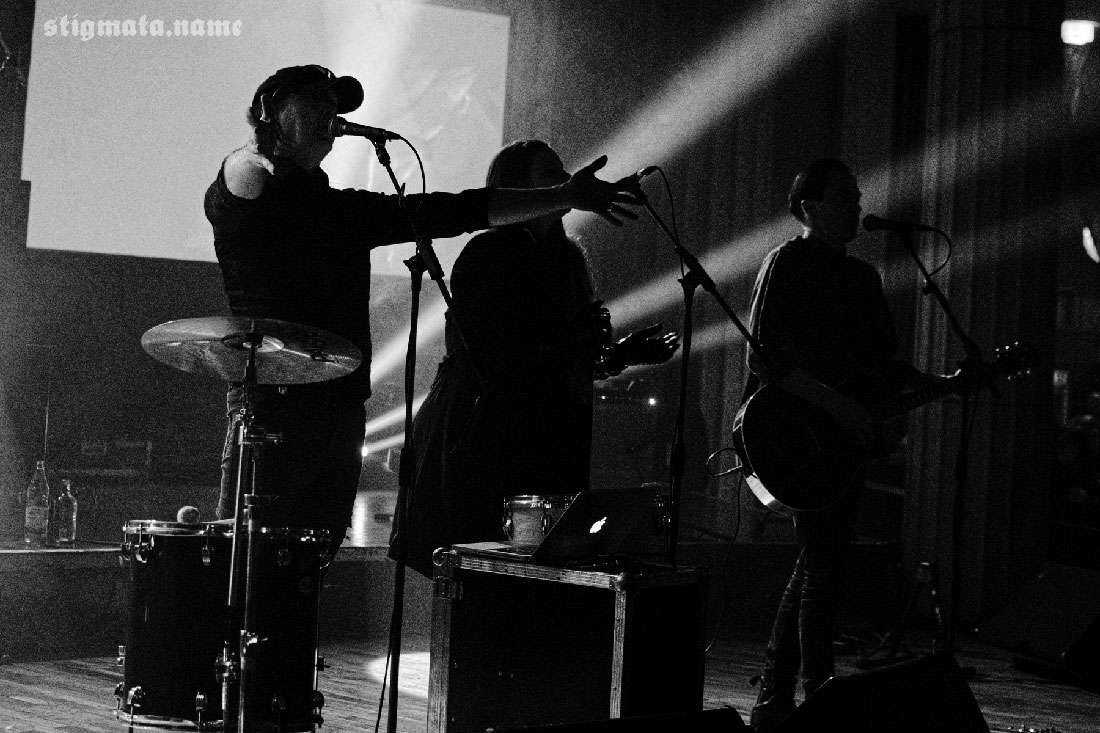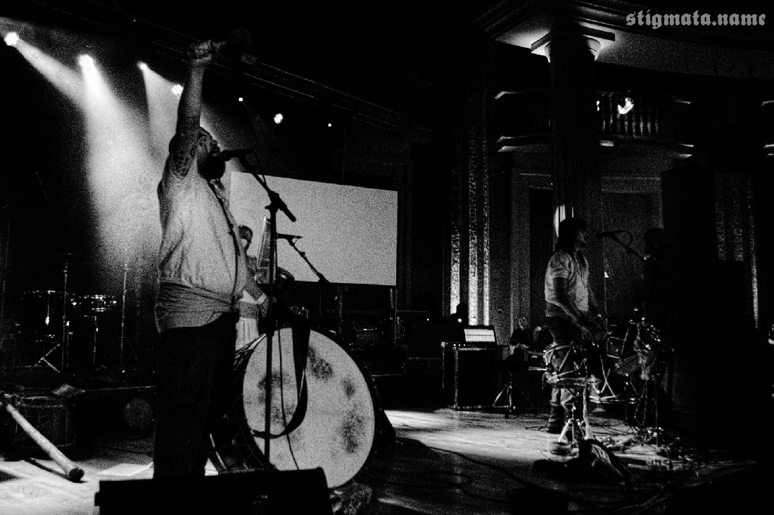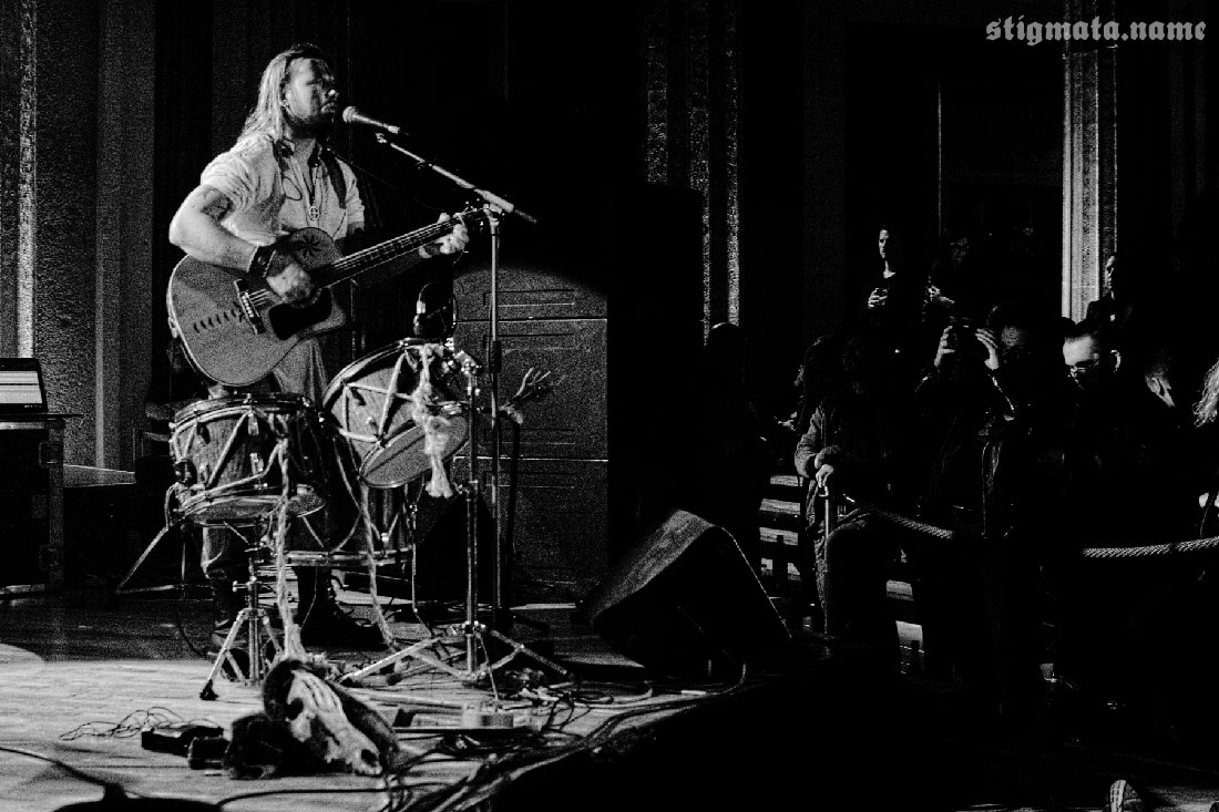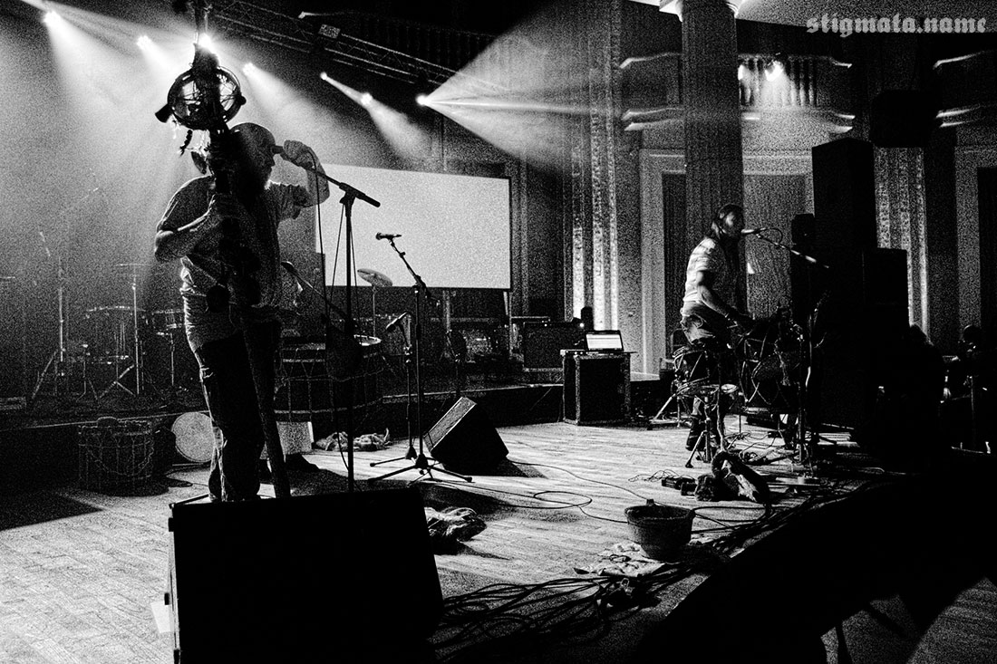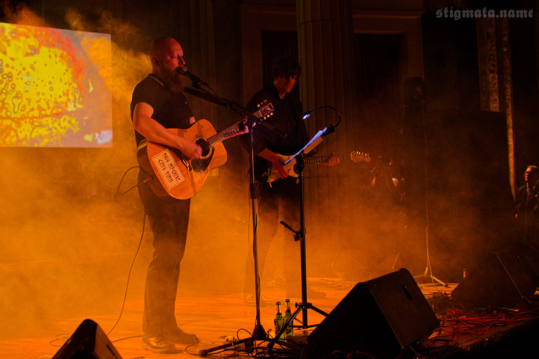 Открывали вечер венгры LARRNAKH. Лидер команды Sörös Gergö пел и играл на акустической гитаре, две барышни помогали ему со струнными — одна играла на скрипке, другая — на виолончели. Выступление группы было именно таким, каким я и ожидал — немного скучновато, но по-своему красиво. Для разогрева — в самый раз.