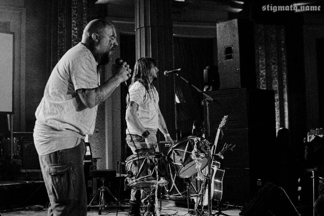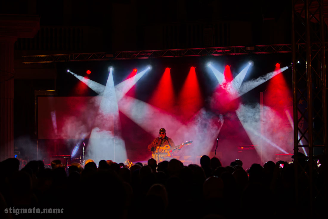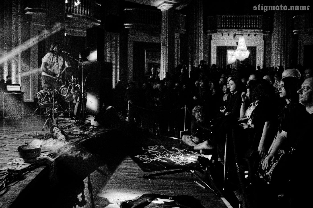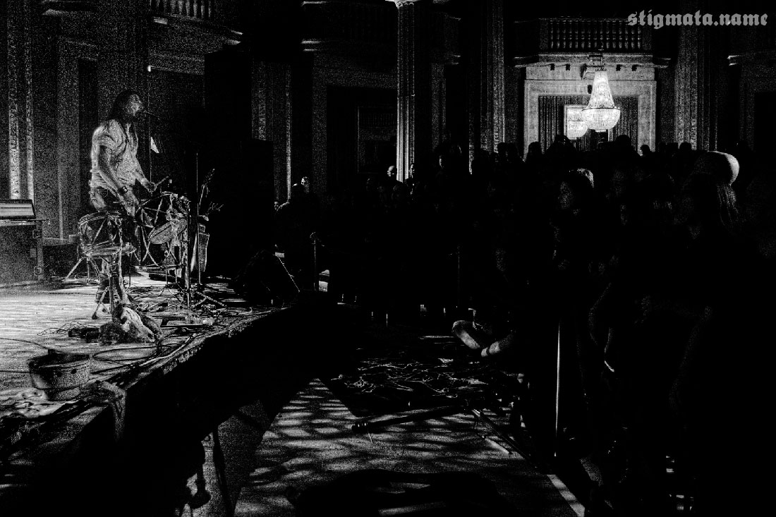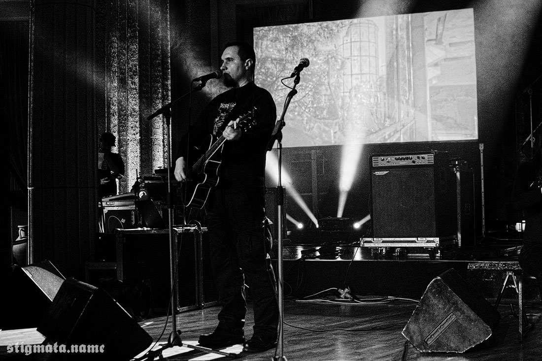 Открывали вечер венгры LARRNAKH. Лидер команды Sörös Gergö пел и играл на акустической гитаре, две барышни помогали ему со струнными — одна играла на скрипке, другая — на виолончели. Выступление группы было именно таким, каким я и ожидал — немного скучновато, но по-своему красиво. Для разогрева — в самый раз.