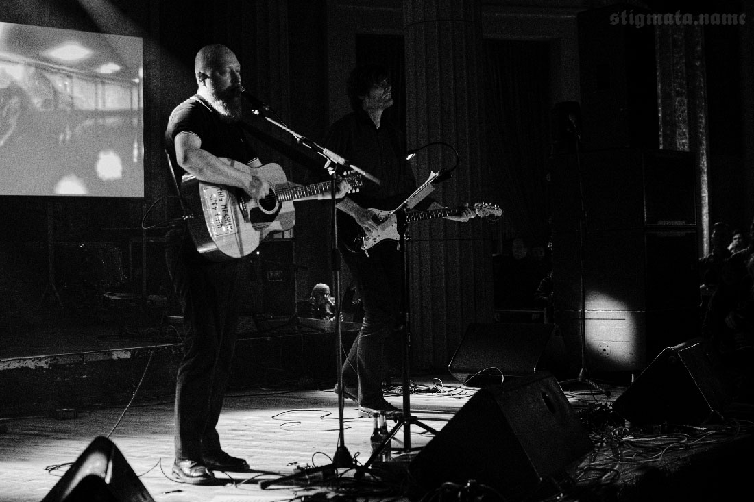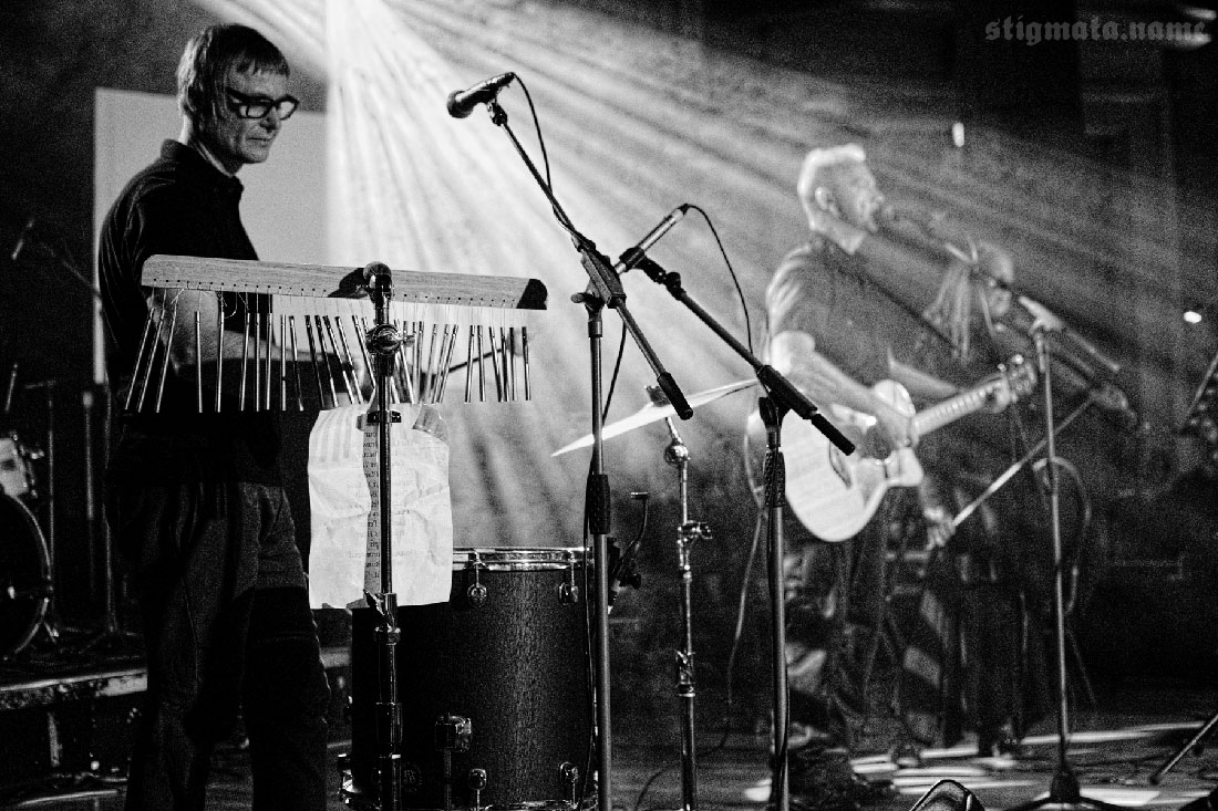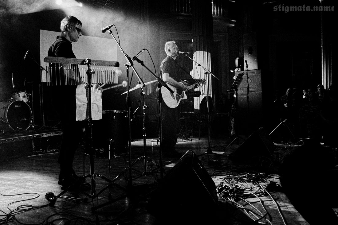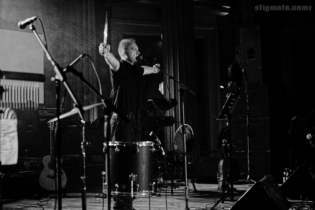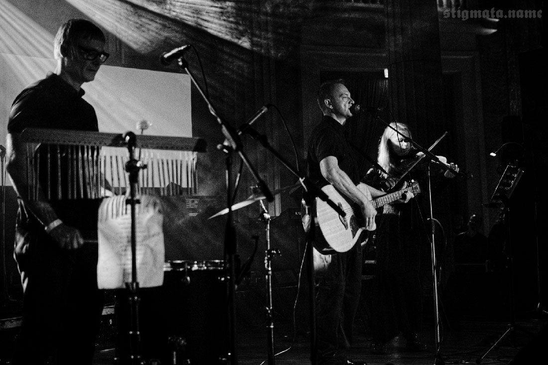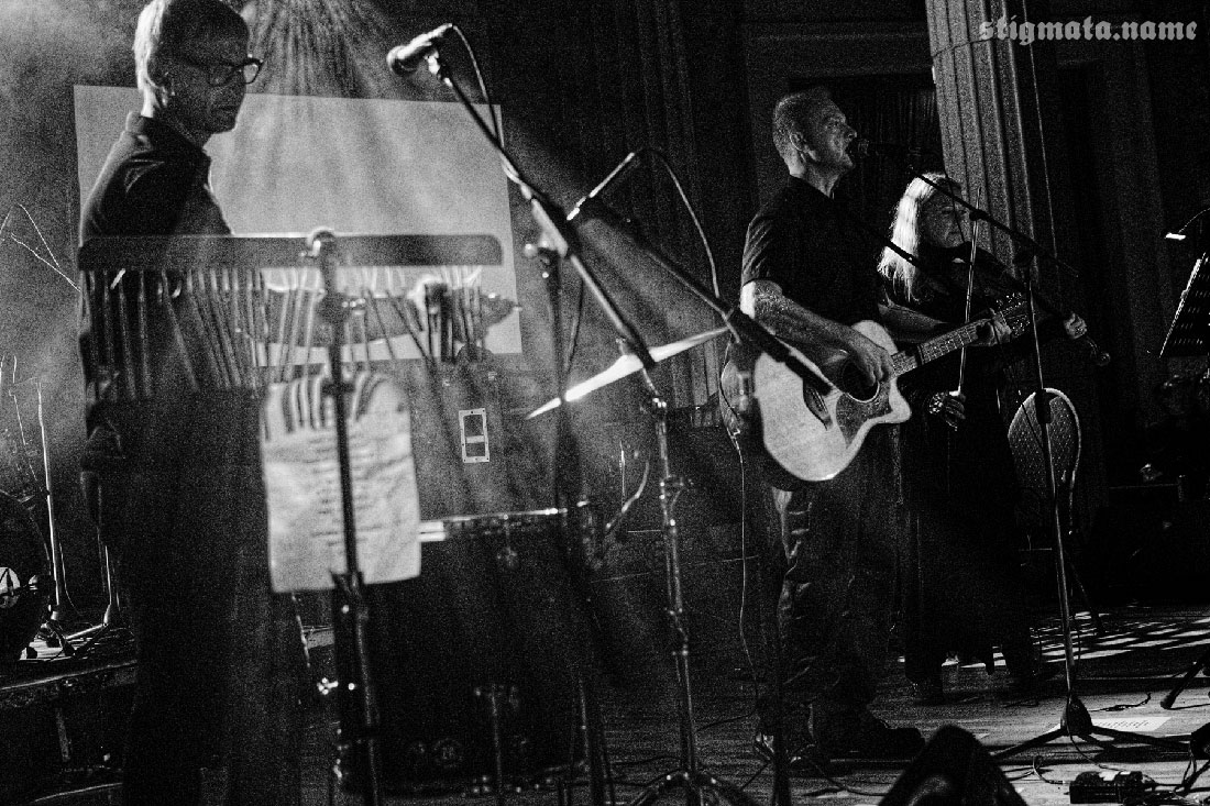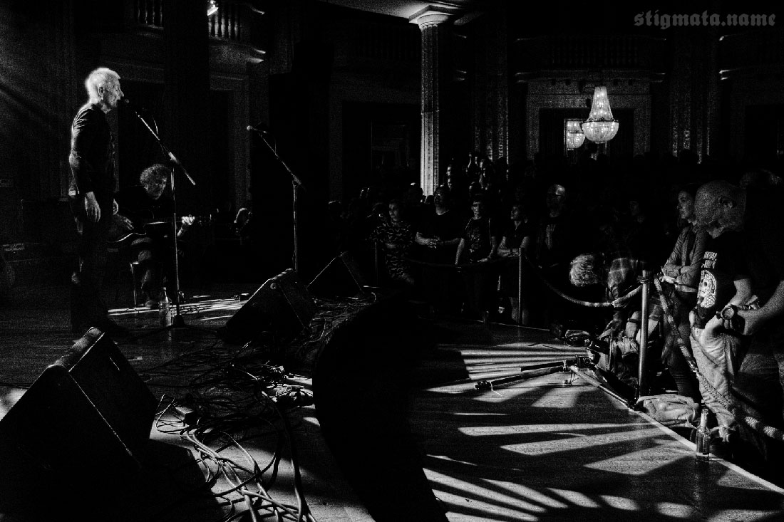 Завершили фестиваль Даглас и DEATH IN JUNE: сначала на сцене появился Миро в униформе и маске — он немного поиграл на синтезаторе, затем обозначился и Даглас, тоже в униформе и маске. Если вы видели DEATH IN JUNE «живьем», то наверняка знаете этот издавна заведенный ритуал, которому подчиняется едва ли не каждое выступление команды: сначала шумное и ритмичное вступление, затем, в какой-то момент, Даглас снимает маску и начинается время акустических баллад. Не хватало в этот октябрьский вечер лишь верного спутника Дагласа по турне — Джона Мерфи. Много раз видел я DEATH IN JUNE на сцене, и всегда там присутствовал Джон, и всегда мне казалось, что этот незаметный человек вроде бы и ничем толком не занимается — тут немного постучит в барабан, там немного позвенит, пошуршит маракасами… Признаюсь, иногда я себе задавал вопрос: а зачем он вообще нужен? И вот его не стало, и оказалось — DEATH IN JUNE без Джона уже совсем не та группа, к которой ты привык. Миро в меру своих талантов, конечно, пытался заменить Джона с перкуссией, но было ясно, что он не справляется. Оказывается, незаметный человек в тени сцены все это время был не таким уж и незаметным. Многим его действительно не хватает. До финала выступления DEATH IN JUNE мы с товарищами не досидели — было нужно успеть на автобус, так что эпичного эпилога, когда все звезды вечера вышли на сцену и спели вместе с Дагласом, мы не увидели. Увы. Нам предстояла долгая (почти в сутки!) дорога домой. Но и того, что мы увидели, хватит на годы воспоминаний.