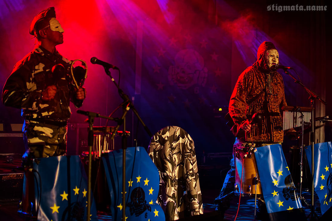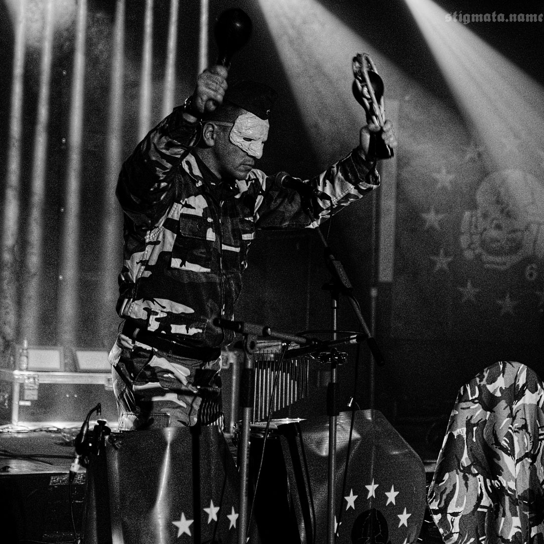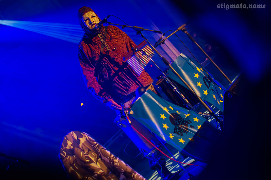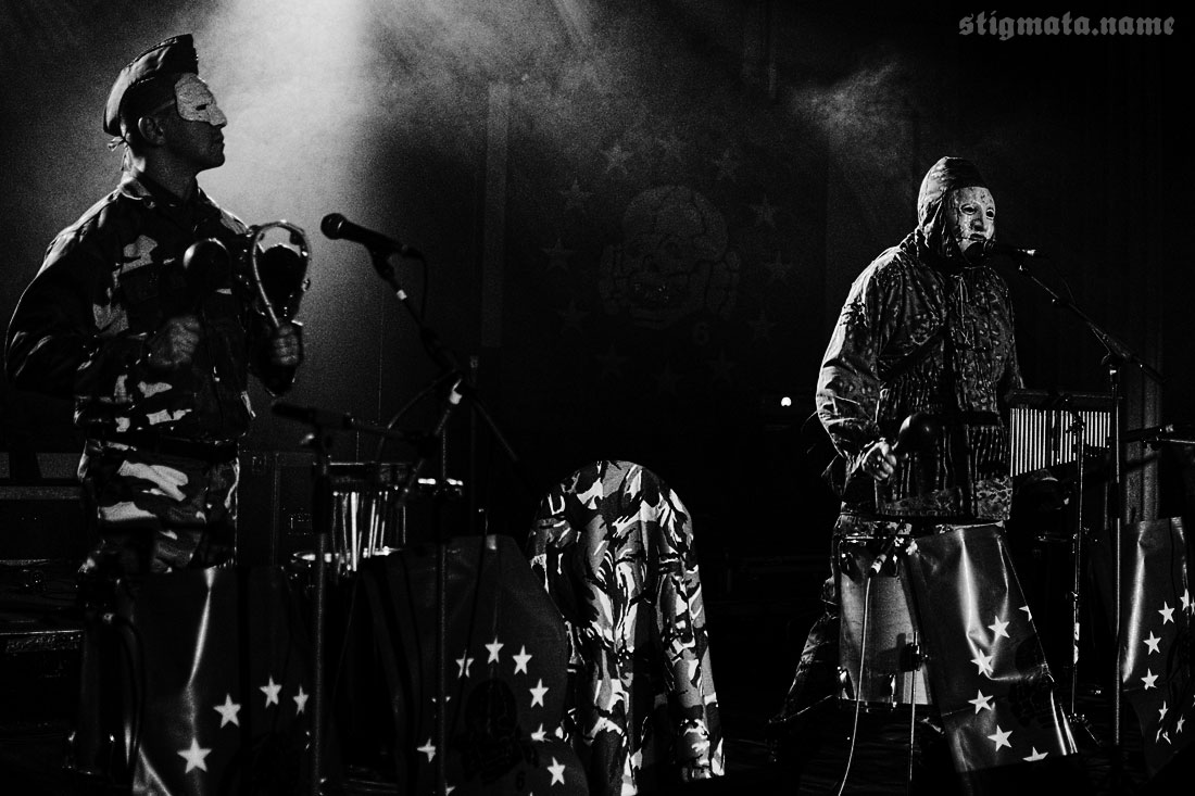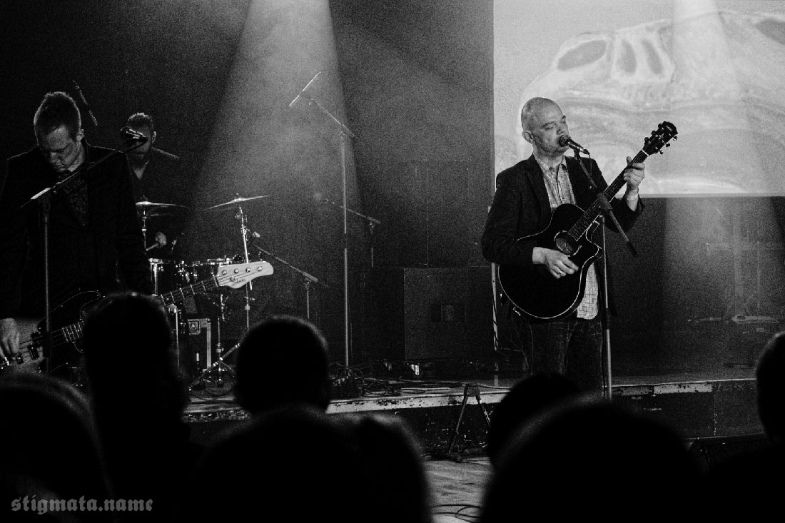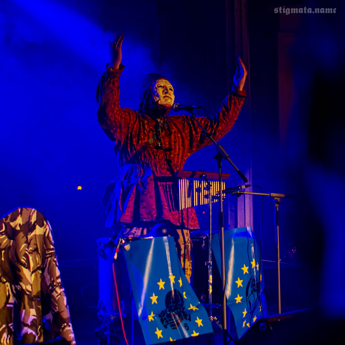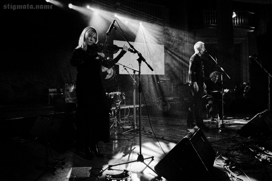 Завершили фестиваль Даглас и DEATH IN JUNE: сначала на сцене появился Миро в униформе и маске — он немного поиграл на синтезаторе, затем обозначился и Даглас, тоже в униформе и маске. Если вы видели DEATH IN JUNE «живьем», то наверняка знаете этот издавна заведенный ритуал, которому подчиняется едва ли не каждое выступление команды: сначала шумное и ритмичное вступление, затем, в какой-то момент, Даглас снимает маску и начинается время акустических баллад. Не хватало в этот октябрьский вечер лишь верного спутника Дагласа по турне — Джона Мерфи. Много раз видел я DEATH IN JUNE на сцене, и всегда там присутствовал Джон, и всегда мне казалось, что этот незаметный человек вроде бы и ничем толком не занимается — тут немного постучит в барабан, там немного позвенит, пошуршит маракасами… Признаюсь, иногда я себе задавал вопрос: а зачем он вообще нужен? И вот его не стало, и оказалось — DEATH IN JUNE без Джона уже совсем не та группа, к которой ты привык. Миро в меру своих талантов, конечно, пытался заменить Джона с перкуссией, но было ясно, что он не справляется. Оказывается, незаметный человек в тени сцены все это время был не таким уж и незаметным. Многим его действительно не хватает. До финала выступления DEATH IN JUNE мы с товарищами не досидели — было нужно успеть на автобус, так что эпичного эпилога, когда все звезды вечера вышли на сцену и спели вместе с Дагласом, мы не увидели. Увы. Нам предстояла долгая (почти в сутки!) дорога домой. Но и того, что мы увидели, хватит на годы воспоминаний.