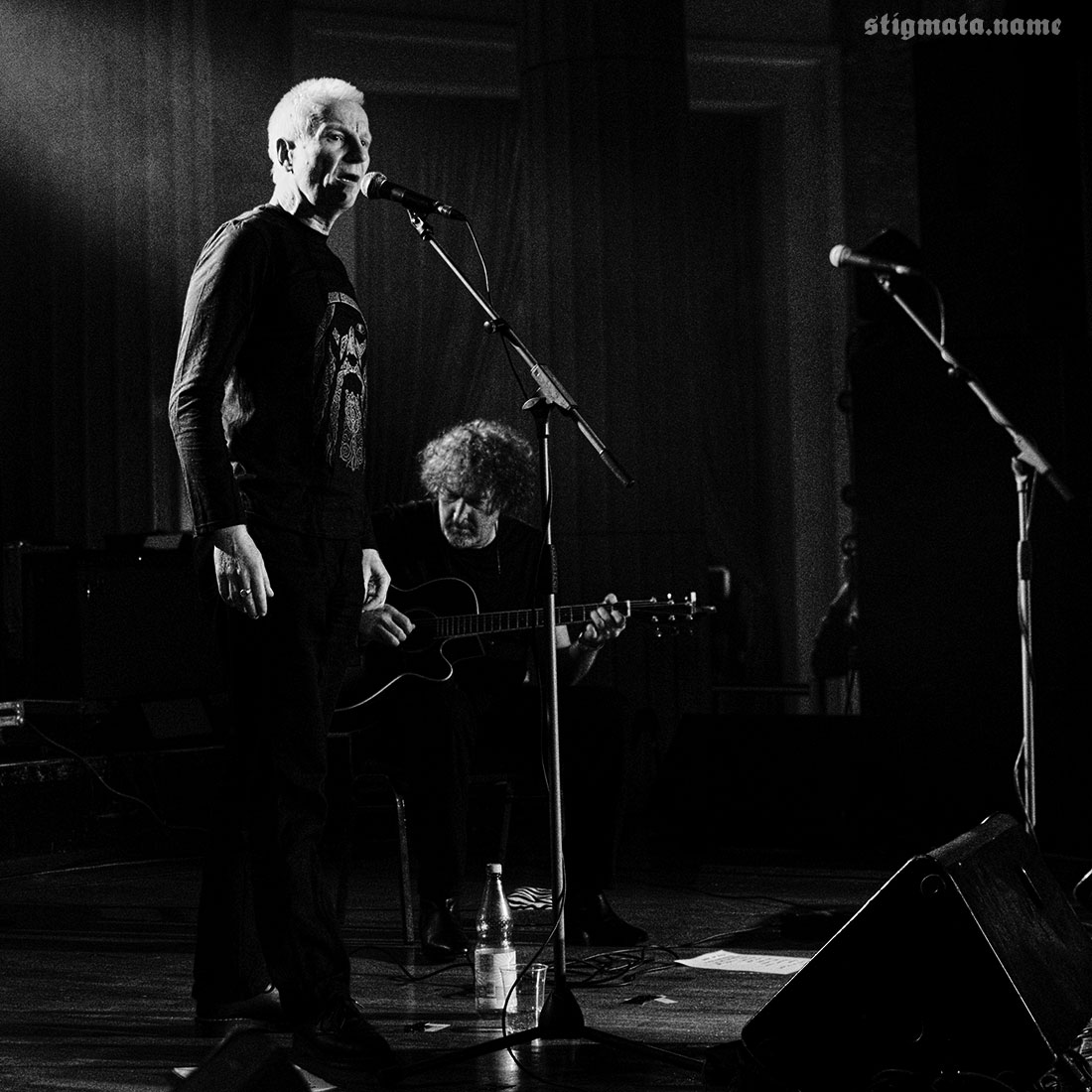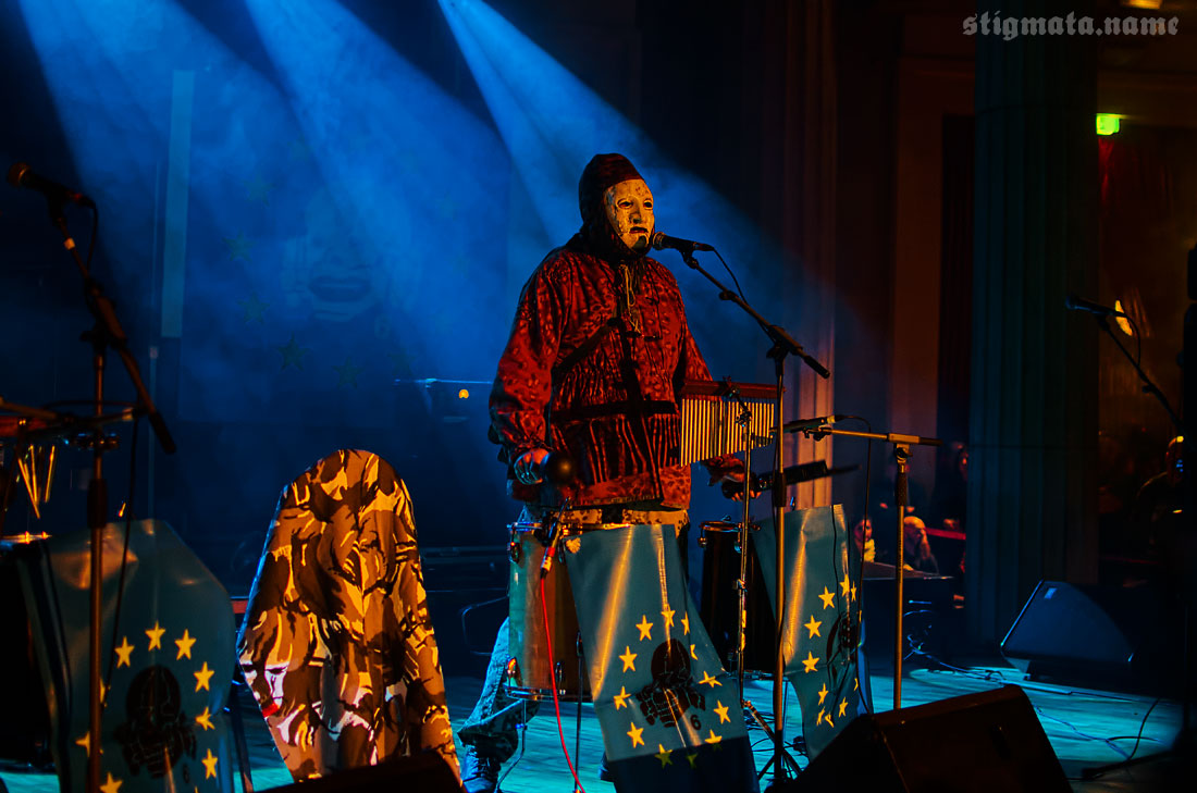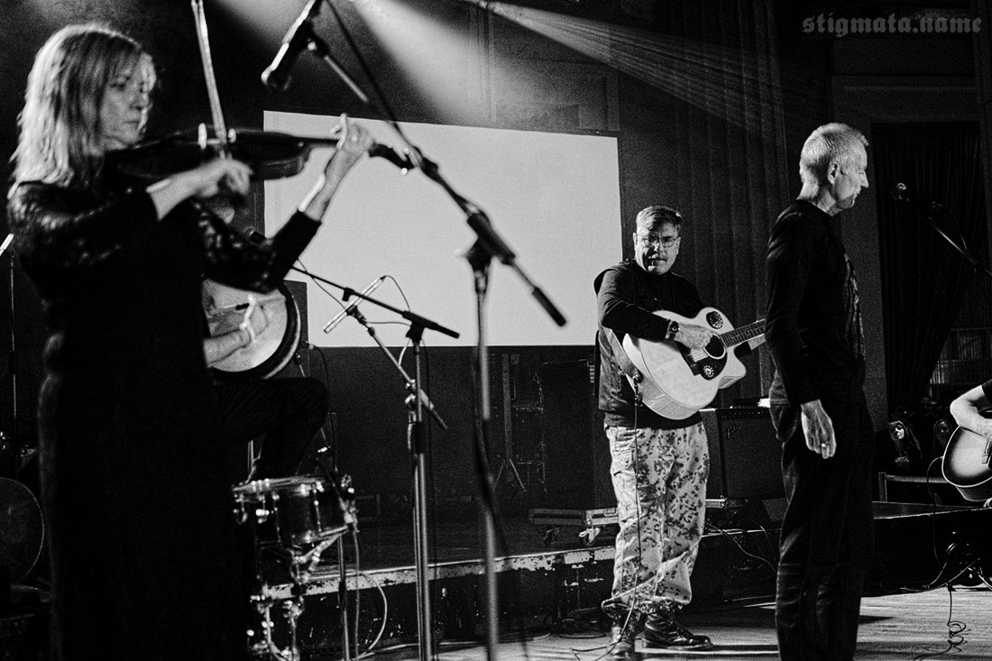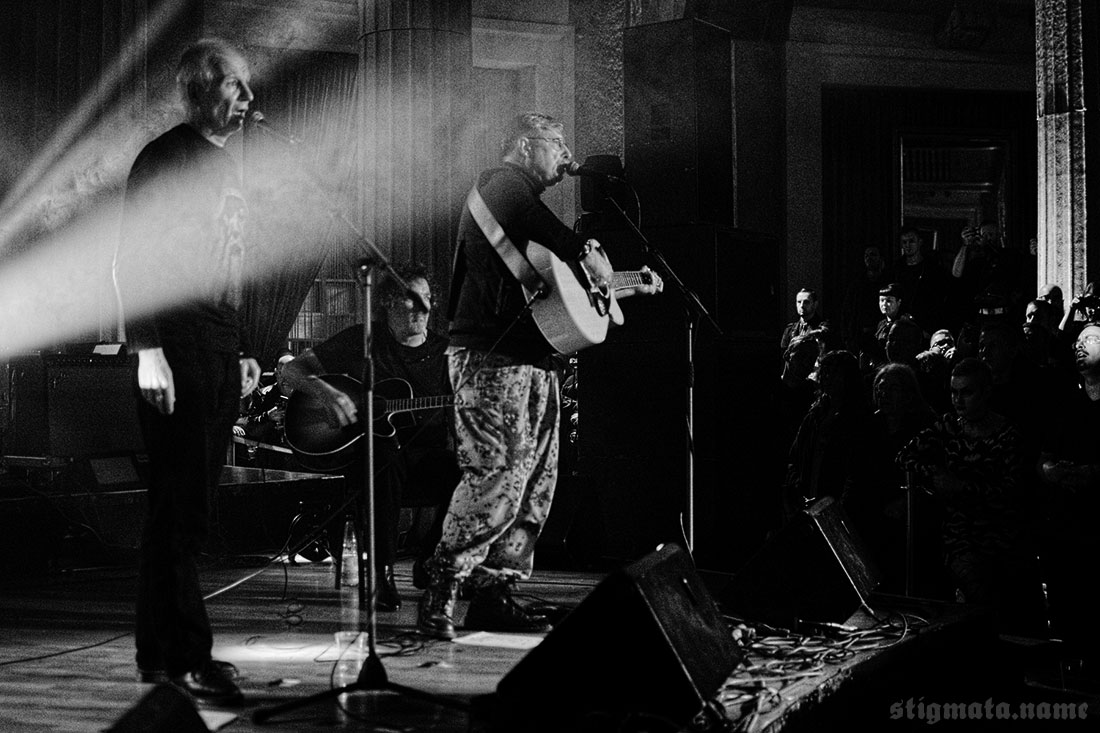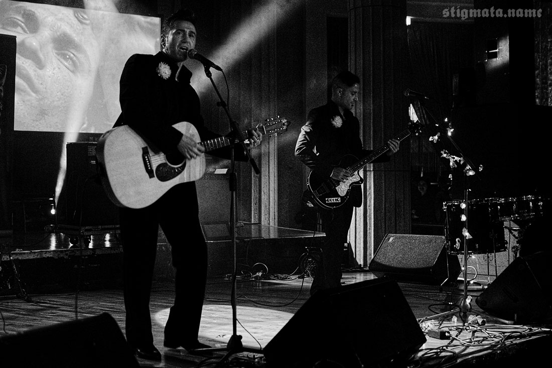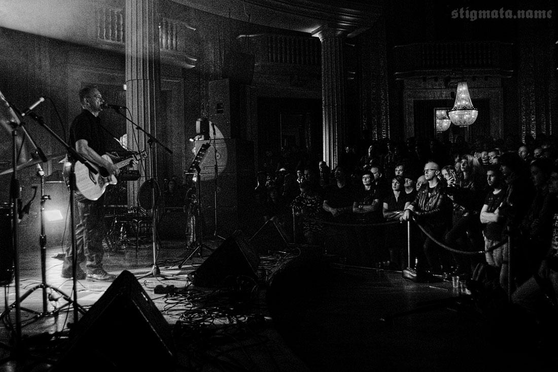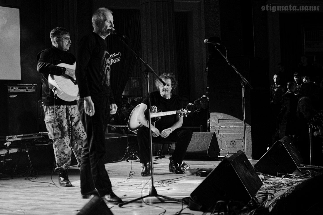 Завершили фестиваль Даглас и DEATH IN JUNE: сначала на сцене появился Миро в униформе и маске — он немного поиграл на синтезаторе, затем обозначился и Даглас, тоже в униформе и маске. Если вы видели DEATH IN JUNE «живьем», то наверняка знаете этот издавна заведенный ритуал, которому подчиняется едва ли не каждое выступление команды: сначала шумное и ритмичное вступление, затем, в какой-то момент, Даглас снимает маску и начинается время акустических баллад. Не хватало в этот октябрьский вечер лишь верного спутника Дагласа по турне — Джона Мерфи. Много раз видел я DEATH IN JUNE на сцене, и всегда там присутствовал Джон, и всегда мне казалось, что этот незаметный человек вроде бы и ничем толком не занимается — тут немного постучит в барабан, там немного позвенит, пошуршит маракасами… Признаюсь, иногда я себе задавал вопрос: а зачем он вообще нужен? И вот его не стало, и оказалось — DEATH IN JUNE без Джона уже совсем не та группа, к которой ты привык. Миро в меру своих талантов, конечно, пытался заменить Джона с перкуссией, но было ясно, что он не справляется. Оказывается, незаметный человек в тени сцены все это время был не таким уж и незаметным. Многим его действительно не хватает. До финала выступления DEATH IN JUNE мы с товарищами не досидели — было нужно успеть на автобус, так что эпичного эпилога, когда все звезды вечера вышли на сцену и спели вместе с Дагласом, мы не увидели. Увы. Нам предстояла долгая (почти в сутки!) дорога домой. Но и того, что мы увидели, хватит на годы воспоминаний.