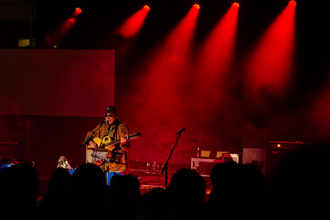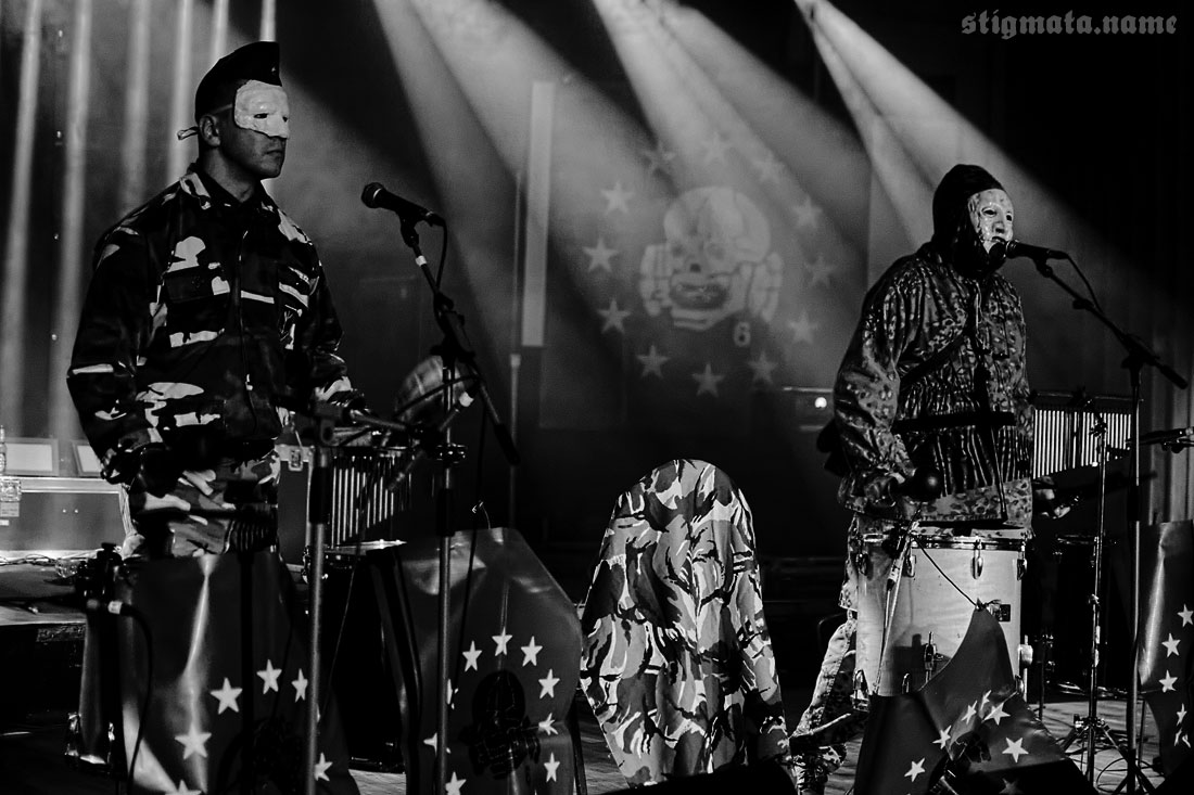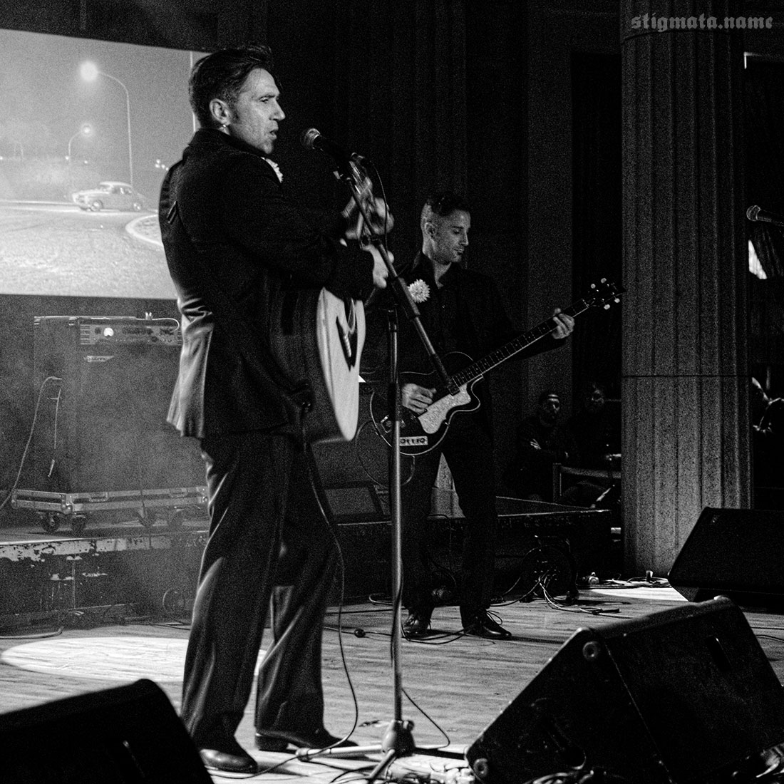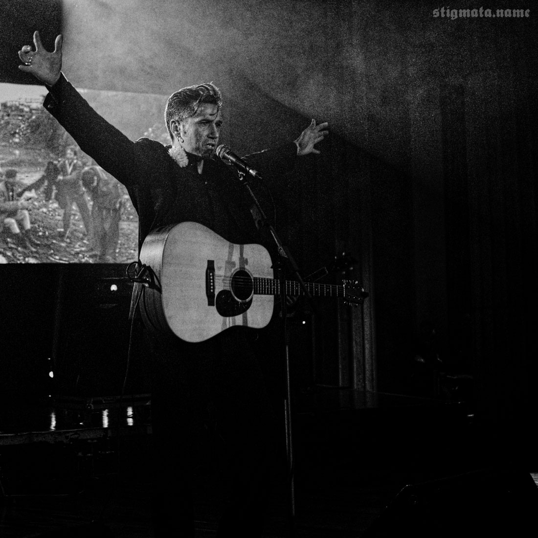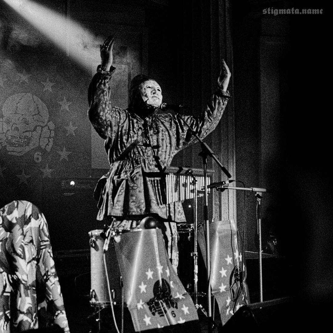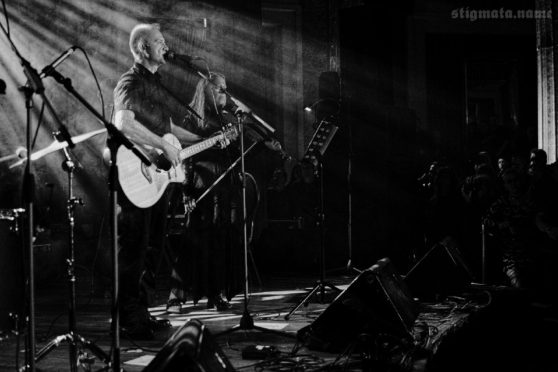Завершили фестиваль Даглас и DEATH IN JUNE: сначала на сцене появился Миро в униформе и маске — он немного поиграл на синтезаторе, затем обозначился и Даглас, тоже в униформе и маске. Если вы видели DEATH IN JUNE «живьем», то наверняка знаете этот издавна заведенный ритуал, которому подчиняется едва ли не каждое выступление команды: сначала шумное и ритмичное вступление, затем, в какой-то момент, Даглас снимает маску и начинается время акустических баллад. Не хватало в этот октябрьский вечер лишь верного спутника Дагласа по турне — Джона Мерфи. Много раз видел я DEATH IN JUNE на сцене, и всегда там присутствовал Джон, и всегда мне казалось, что этот незаметный человек вроде бы и ничем толком не занимается — тут немного постучит в барабан, там немного позвенит, пошуршит маракасами… Признаюсь, иногда я себе задавал вопрос: а зачем он вообще нужен? И вот его не стало, и оказалось — DEATH IN JUNE без Джона уже совсем не та группа, к которой ты привык. Миро в меру своих талантов, конечно, пытался заменить Джона с перкуссией, но было ясно, что он не справляется. Оказывается, незаметный человек в тени сцены все это время был не таким уж и незаметным. Многим его действительно не хватает. До финала выступления DEATH IN JUNE мы с товарищами не досидели — было нужно успеть на автобус, так что эпичного эпилога, когда все звезды вечера вышли на сцену и спели вместе с Дагласом, мы не увидели. Увы. Нам предстояла долгая (почти в сутки!) дорога домой. Но и того, что мы увидели, хватит на годы воспоминаний.