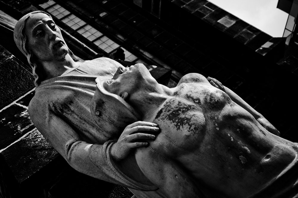 За два дня в городе мы мало что успели посмотреть, увы. Посетили, конечно, знаменитый Лейпцигский университет — там в свое время среди прочих учился и Лев Сапега. Побывали в кирхе святого Фомы, в которой работал и играл на органе Бах. Попробовали местное ужасно кислое пиво гёзе. Посетили просто сказочное по своей красоте здание новой ратуши. Лично меня привело в восторг своим минималистичным брутализмом и стоящее неподалеку от новой ратуши здание какой-то церкви (вверху фоточка). Немного в стороне от центра обнаружили красивую и почему-то заброшенную готическую кирху с замечательной статуей на входе — Иисус обнимает солдата. Нам повезло погулять и по самому настоящему фермерскому рынку на центральной площади города — заодно поели традиционных местных сосисок. Да, в Лейпциге родился Вагнер. Который композитор. Ему даже там памятник стоит — крайне несуразный, видать, не простили композитору его взглядов. Сходили в музей Штази, интерьер которого до боли напоминает интерьеры беларусских военкоматов нашего времени. Ну а главная достопримечательность Лейпцига — это, конечно, Монумент Битве Народов, пожалуй, самый величественный монумент воинской доблести из всех, виденных мною до сих пор. После него смотреть на советскую патриотическую архитектуру просто не хочется — тот же комплекс Брестской крепости, например, на фоне МБН выглядит несуразной кучей бетона, мало отличающейся от тех куч, в которые стараешься не вступить.