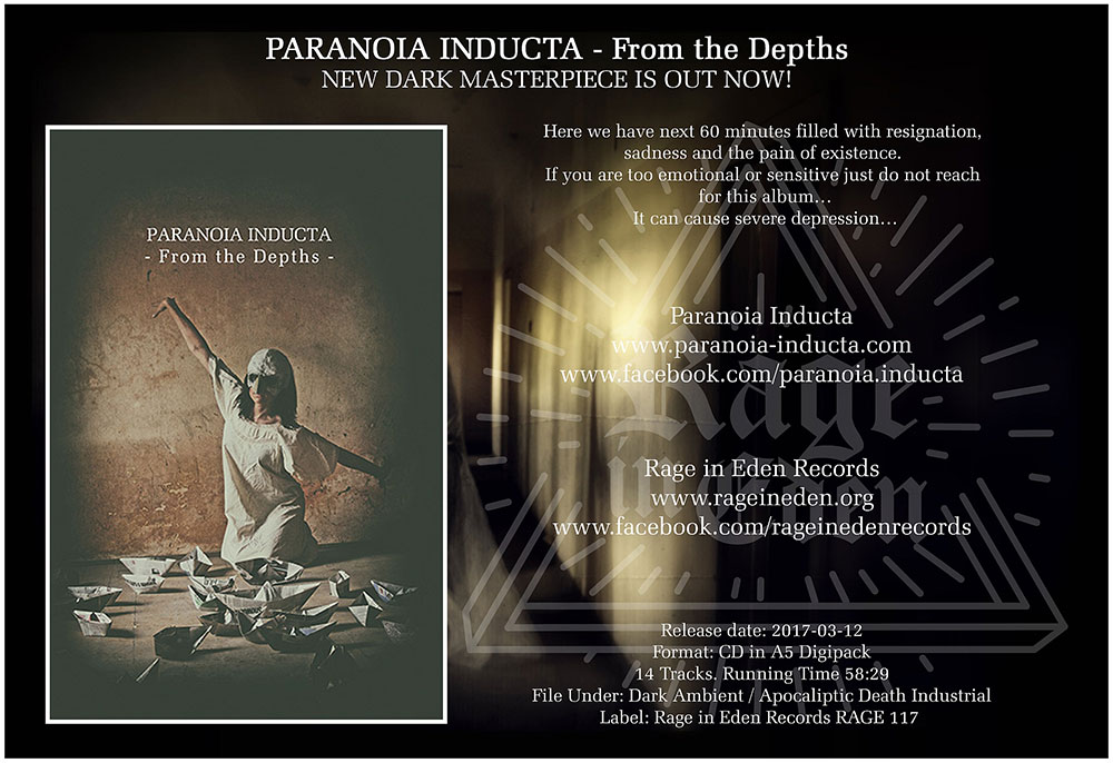 PARANOIA INDUCTA - Stigmata · 05/04/2017 У поляков PARANOIA INDUCTA на лейбле Rage In Eden вышел новый альбом — From the Depths. Поделиться: