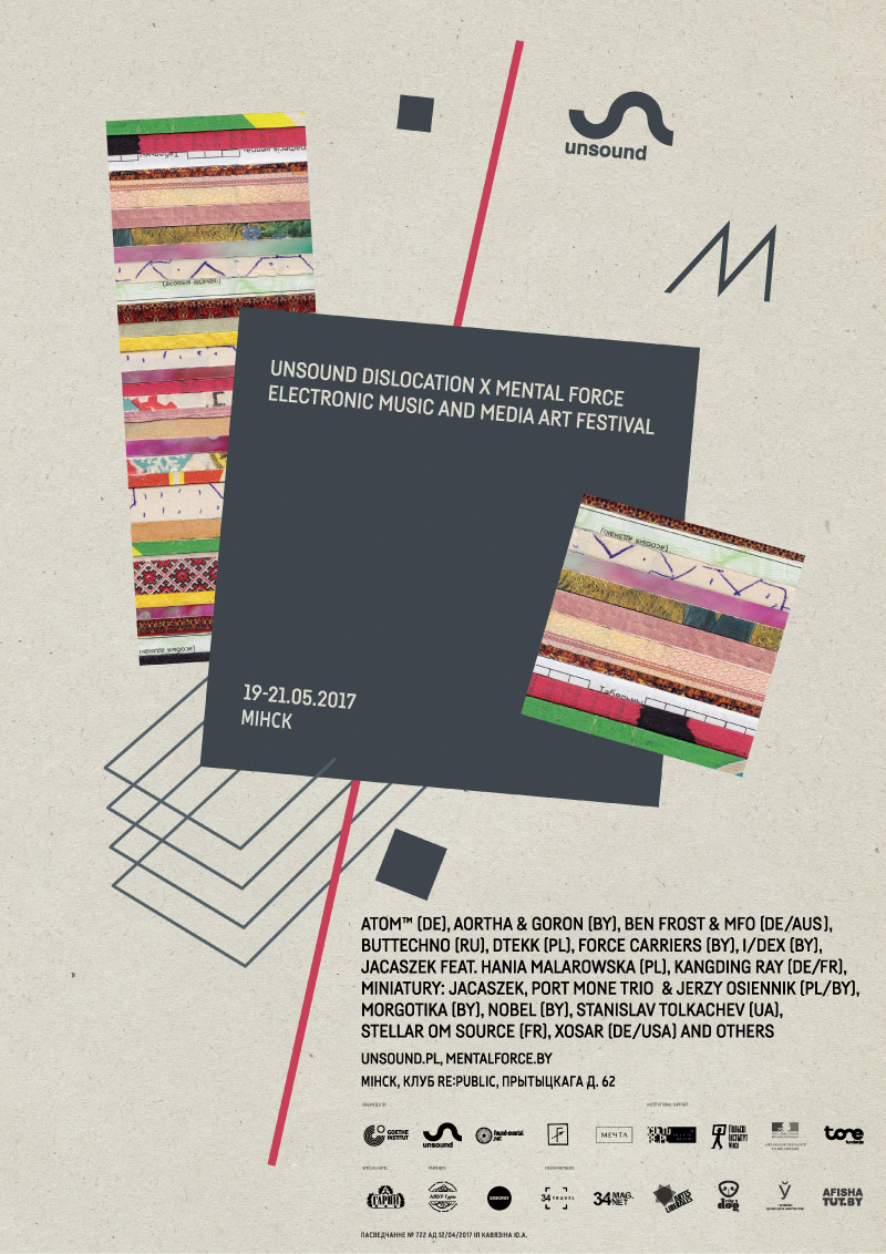 19-21 мая 2017 в Минске пройдёт фестиваль электронной музыки и медиаискусства Unsound Dislocation X Mental Force с участием известных зарубежных и белорусских музыкантов и видео-артистов.