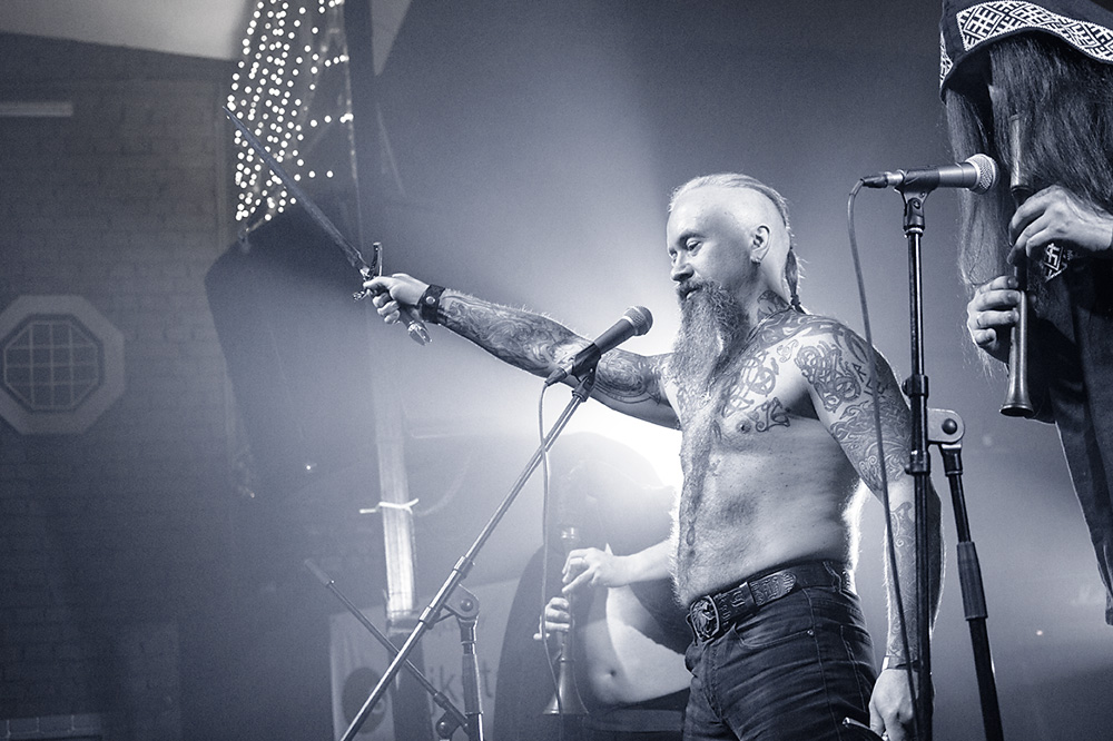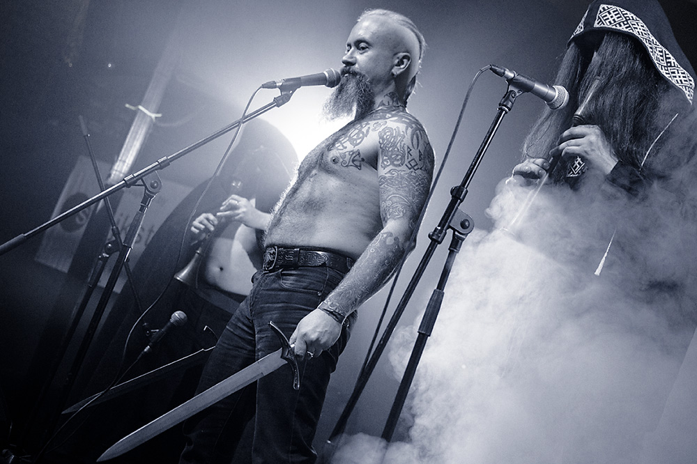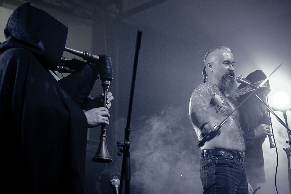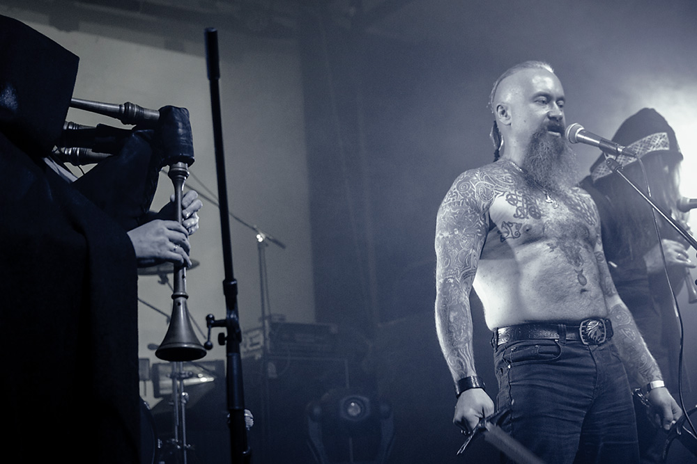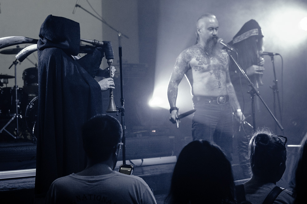 Вроде бы OSTERWEG выступали в Менске впервые. Признаюсь, ничего особого от OSTERWEG я не ожидал — видел пару роликов с их предыдущих концертов, и все действо на них выглядело довольно безрадостно: два человека в балахонах дудят в дудки, очень статично, без особого движения и харизмы. Так вот, оказалось, что мои ожидания совершенно не оправдались — «живьем» OSTERWEG хороши. Да, шоу у OSTERWEG нет, просто два музыканта, просто играют на своих инструментах, но по итогу — только позитивные впечатления и никакой скуки. Хронометраж выступления группы был небольшой. Насколько я понял, играли они только композиции с дебютного альбома, что довольно странно, ведь совсем недавно у группы вышел новый альбом, и они, по идее, должны были бы презентовать именно новый материал. Завершили свой сет OSTERWEG песней с дебютной же пластинки — беларусской версии культового неофолкового хита Wir Rufen Deine Wölfe. Это была единственная неинструментальная композиция за все выступление группы — с вокалом OSTERWEG помог Войст из PRAGNAVIT, который вышел на сцену с голым торсом и всю песню размахивал двумя мечами… правда, вокал у Войста был так себе — но его можно простить, так как в Менск могилевчанин приехал из-под капельницы с температурой 37 (у него пневмония).