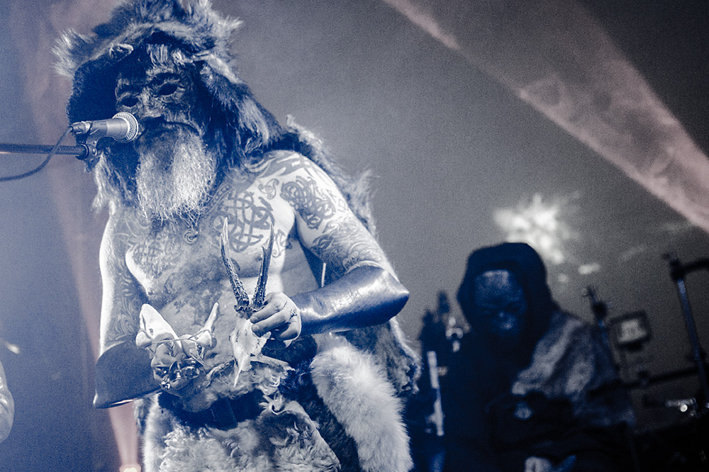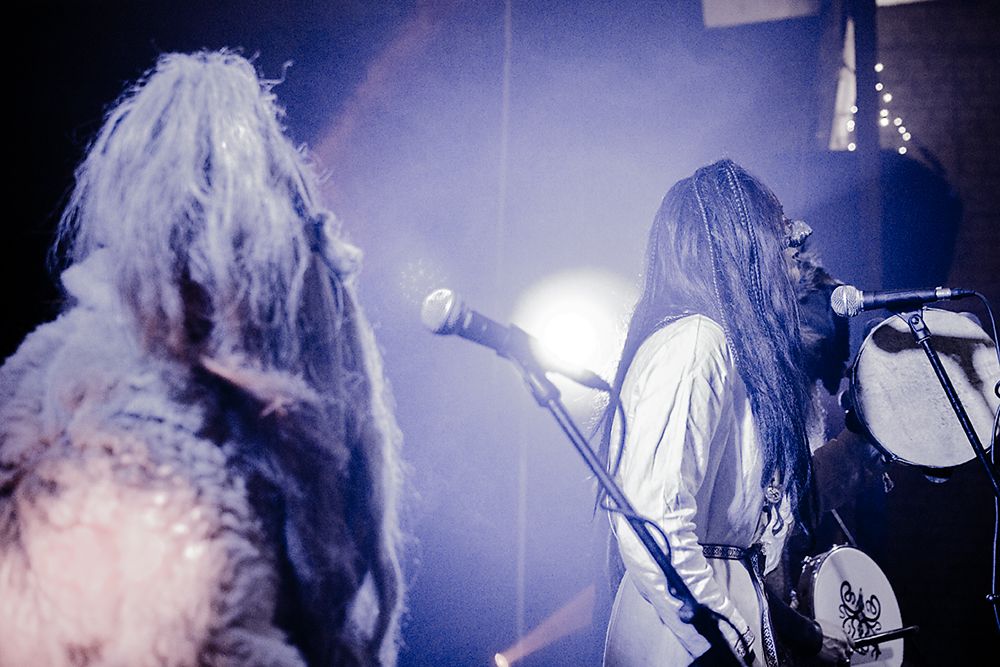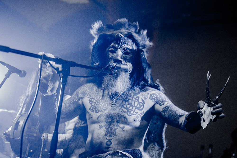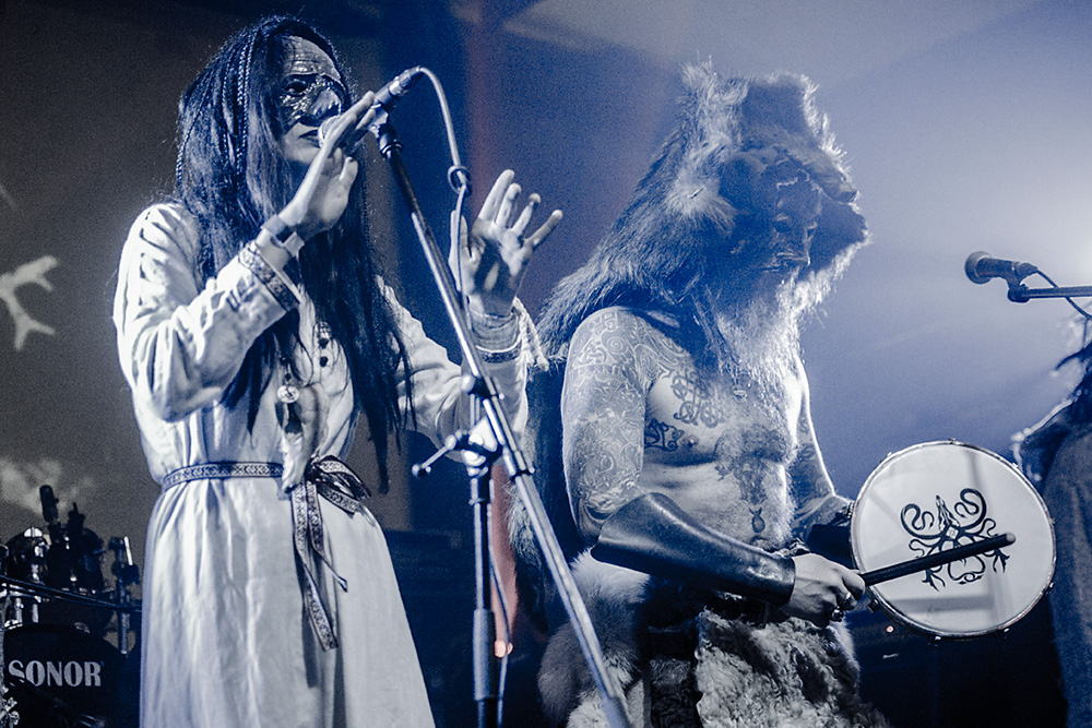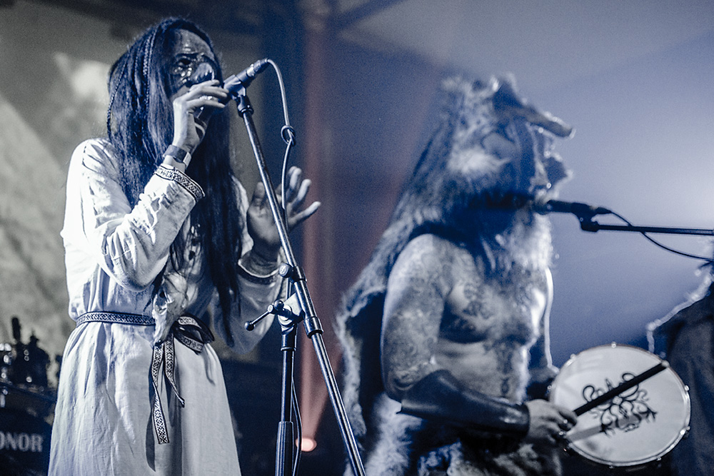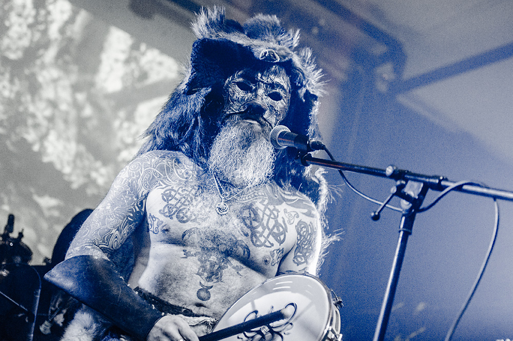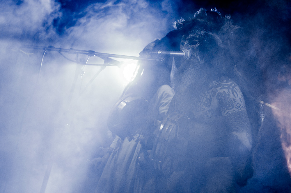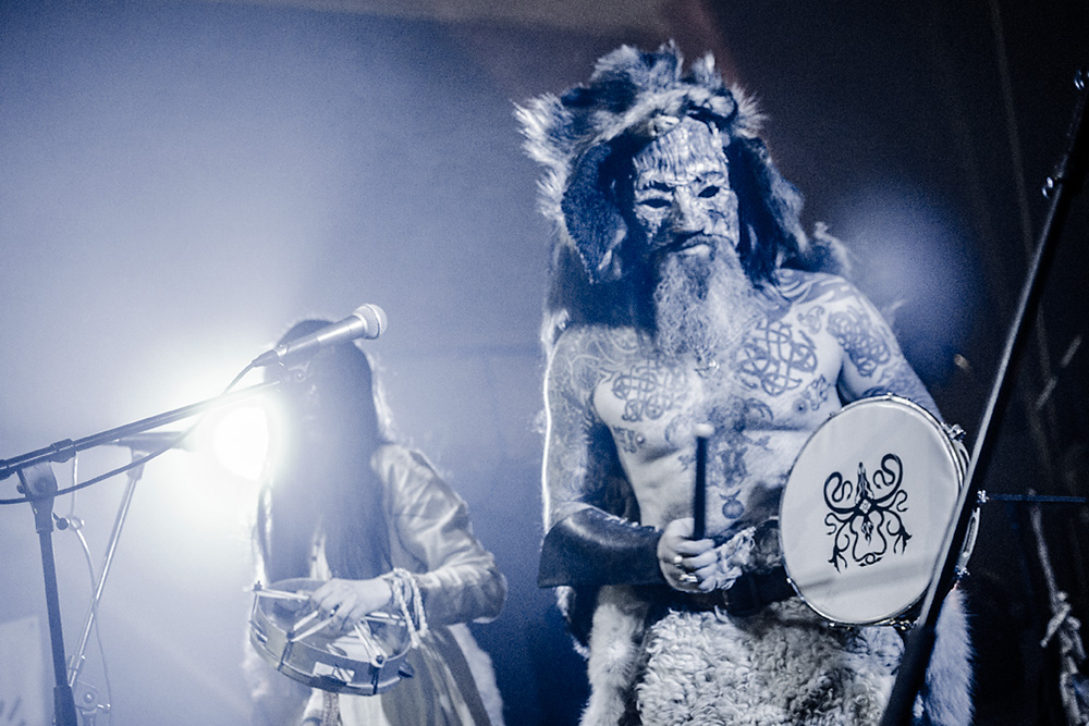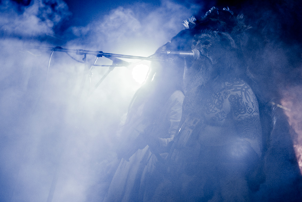 Как я уже сказал ранее, Войст в Менск прибыл с пневмонией, что есть подвиг, но уж больно ему хотелось представить публике новые звук и имидж группы. На этот раз PRAGNAVIT был действительно группой — пять человек на сцене! Вокалистка! Все в костюмах и масках. Можно сказать, что перед нами была супер-группа, потому что с Войстом разделили сцену Микус (КРЫВАКРЫЖ) и музыкант из Украины, игравший ранее с известной black metal группой KRODA. Новое звучание PRAGNAVIT – это все тот же ритуальный ambient, но более трансовый, психоделический и шаманский. Музыка группы стала проще, но забористее. Хотелось бы пояснить про «проще». Творчество одних артистов со временем становится сложнее — это понятно: больше знаний, больше мастерства, хочется наворотить побольше. Хороший пример — норвежские black metal группы, первые альбомы которых представляли собой крайне примитивную, сырую, злую музыку, мало отличающуюся от крайне примитивных архаичных ритуалов. Про близость black metal и архаичной ритуальной музыки хорошо написано у Кадмона в Аорте. Просто послушайте, например, первые релизы GORGOROTH, а потом посмотрите ролики с фестиваля барабанщиков в деревушке Calanda, являющегося отголоском древних языческих мистерий. Но прошли годы, и сегодня мало кто из тех норвежцев, кто записывал сырой яростный black, продолжает это делать. Большинство старых норвежских команд в наши дни играет довольно сложную музыку — техничный метал, арт-рок, джаз и т. д.