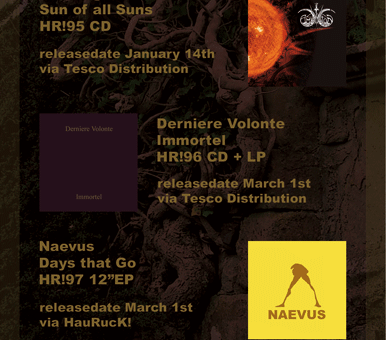 Стали известны даты выхода новых пластинок на HauRuck! К зимним релизам HR!94 — Changes — Lament и HR!95 — Amestigon — Sun of all Suns добавилось 3 весенних.