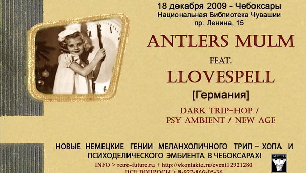 ANTLERS MULM feat. LLOVESPELL РОССИЙСКИЙ ТУР-2009 : 17 ДЕКАБРЯ — МОСКВА 18 ДЕКАБРЯ — ЧЕБОКСАРЫ 19 ДЕКАБРЯ — КАЗАНЬ 20 ДЕКАБРЯ — РОСТОВ