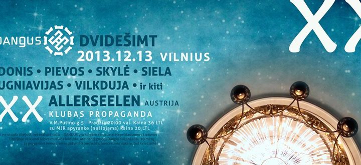Интересное мероприятие в Вильно в декабре! 13 числа в клубе PROPAGANDA (V.M.Putino g. 5) состоится вечеринка в честь 20-летия лейбла Dangus. Дорогая редакция постарается не пропустить такое событие. Выступают: DONIS PIEVOS SIELA SKYLĖ UGNIAVIJAS...