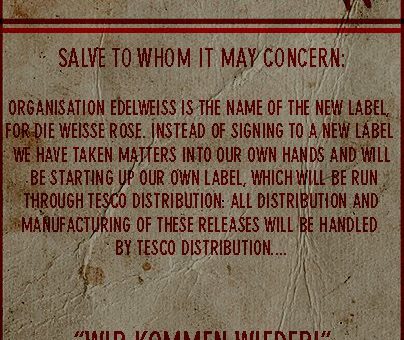 DIE WEISSE ROSE объявили о том, что создают свой собственный лейбл Organisation Edelweiss, который и будет издавать последующие релизы проекта. Дистрибьюцией изданий займется TESCO.